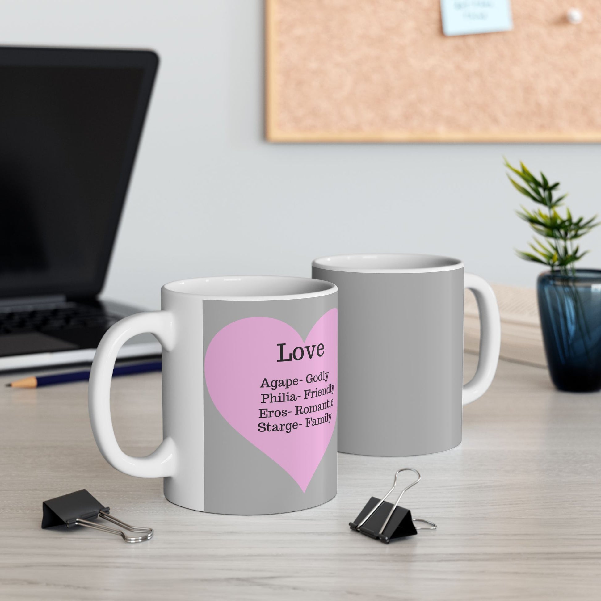 Transform your morning coffee into a moment of pure intention. This glossy white ceramic mug features a soft pink heart that wraps around the side, revealing the ancient Greek definitions of love as you sip. Designed with a comfortable C-handle and a vibrant, long-lasting print, it’s the perfect companion for slow mornings and quiet reflection. Whether you choose the 11oz for a quick pick-me-up or the 15oz for a deep tea session, this mug is a gentle reminder of what truly matters.