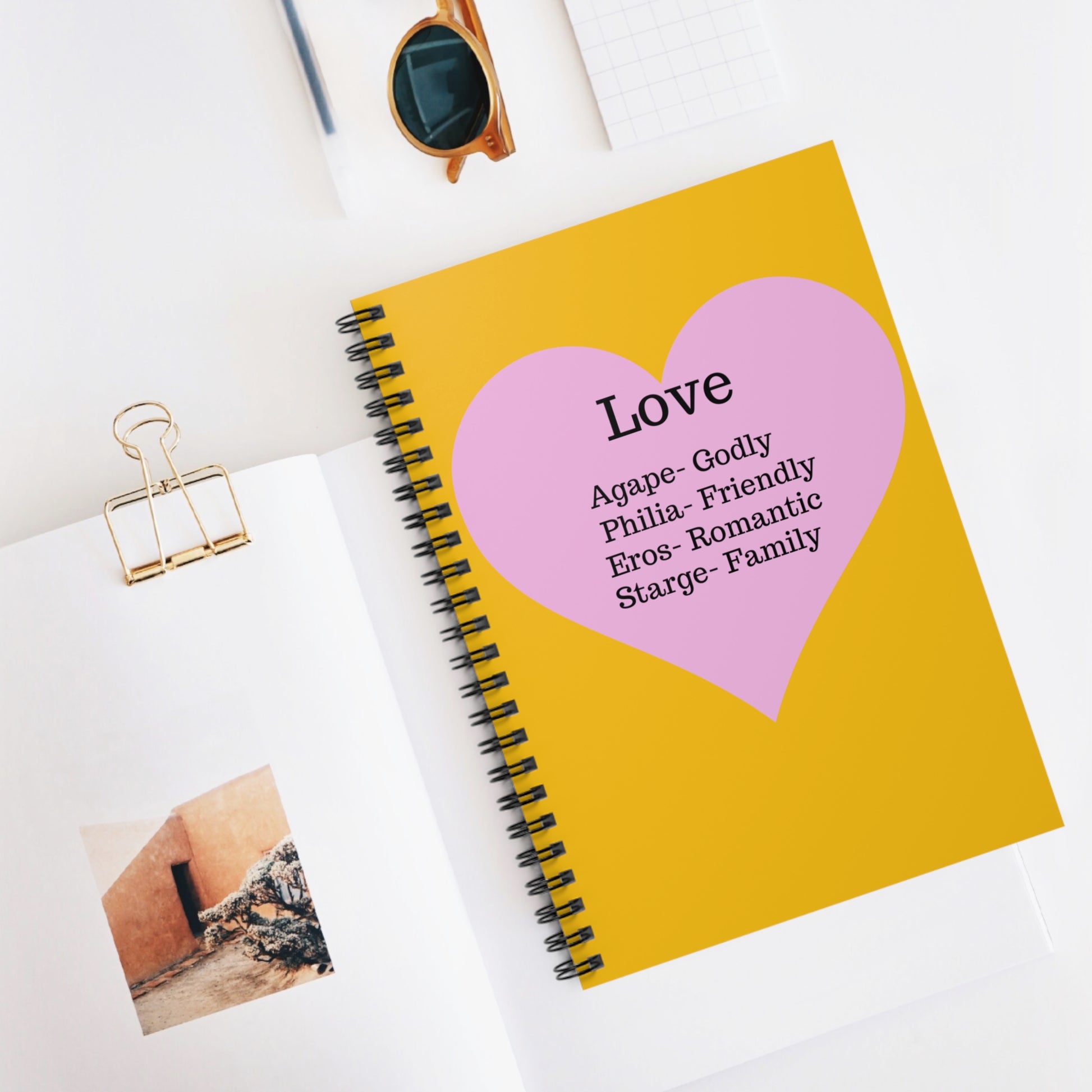 In a world of fast-paced digital notes, return to the meaningful art of writing. Our Love Types Spiral Notebook invites you to explore the classic definitions of unconditional, friendly, romantic, and familial love with every page you turn. The compact size makes it easy to slip into a bag, while the premium ruled paper ensures a smooth, consistent writing surface for your most important realizations. Discover a beautiful, tactile place to document your journey and the connections that matter most.