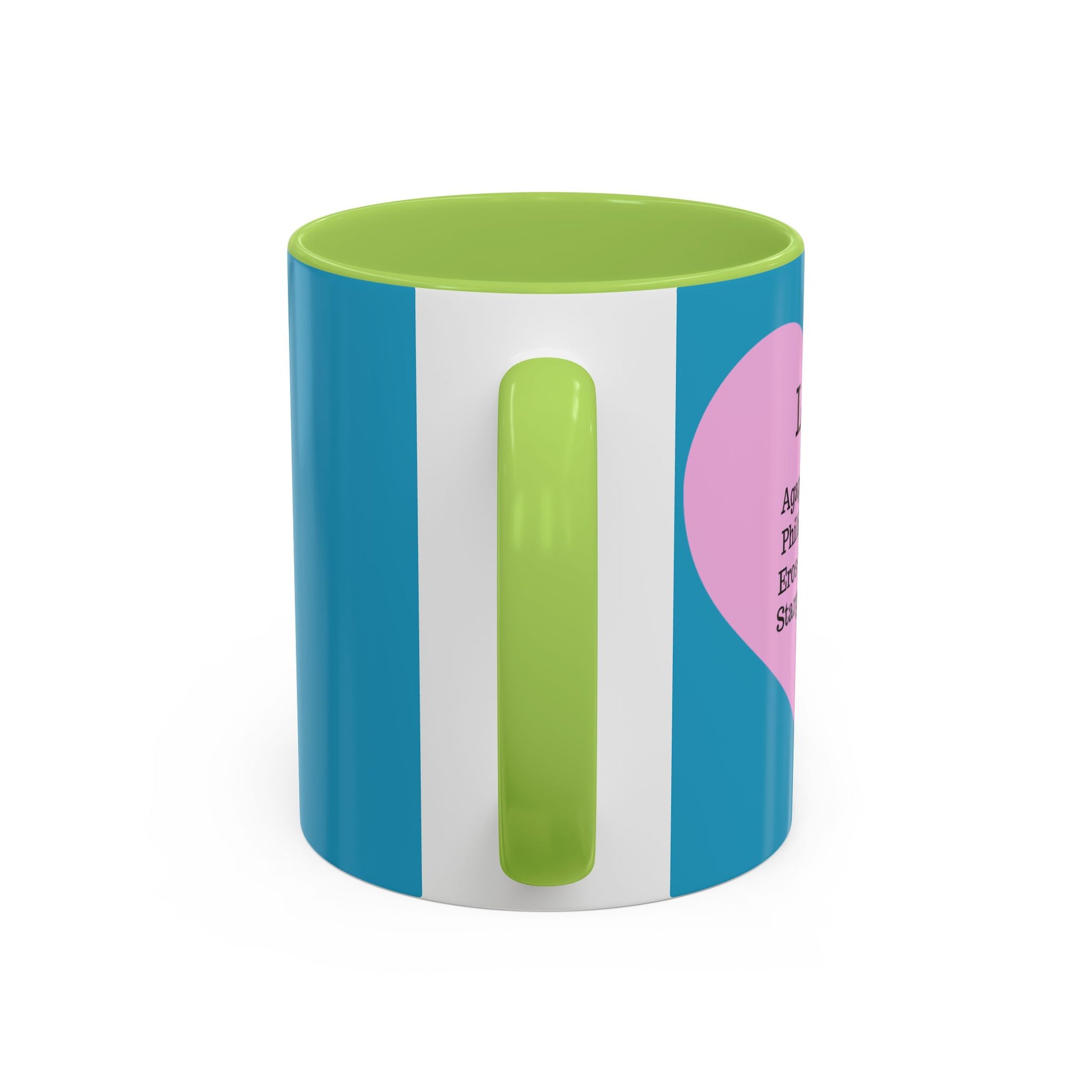 Start your day with a splash of color and personality with this stylish Accent Coffee Mug. It features a charming heart design and an eye-catching contrast with its colored interior and handle, bringing a touch of warmth and love to your routine. The vibrant colors and glossy finish make it a delightful addition to any kitchen or office.