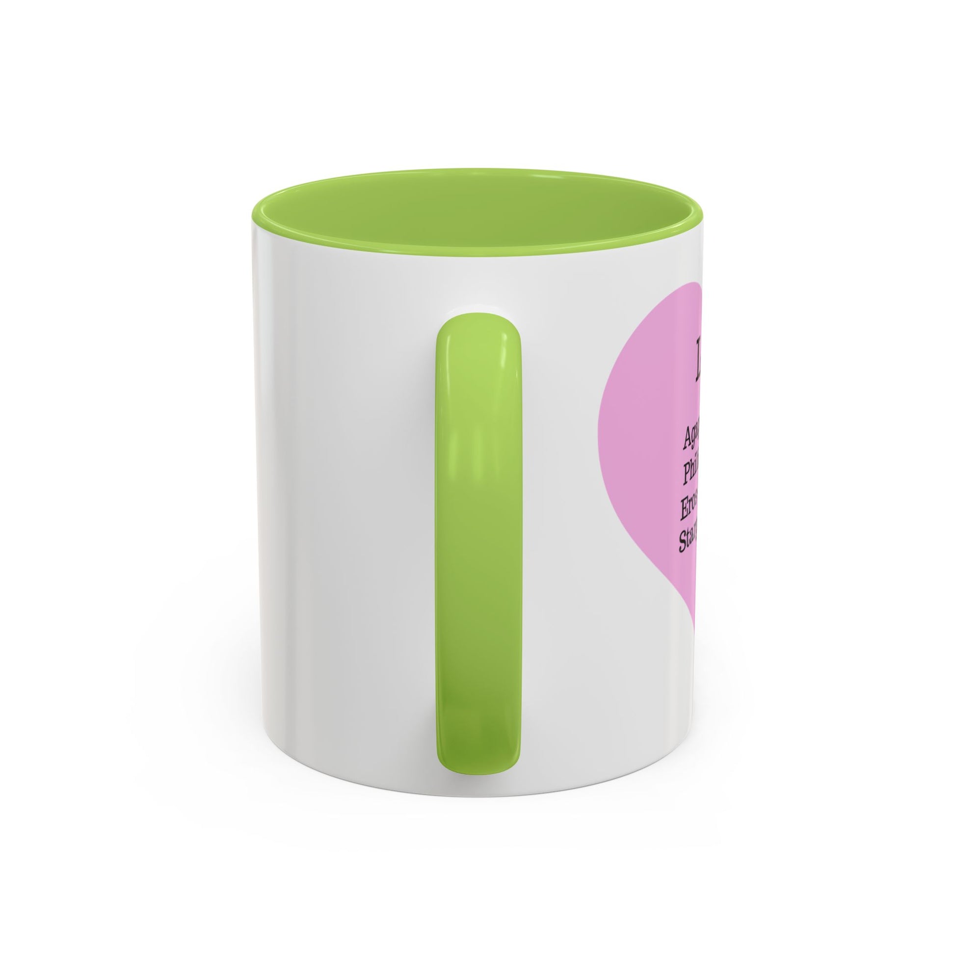 Start your day with a splash of color and personality with this stylish Accent Coffee Mug. It features a charming heart design and an eye-catching contrast with its colored interior and handle, bringing a touch of warmth and love to your routine. The vibrant colors and glossy finish make it a delightful addition to any kitchen or office.
