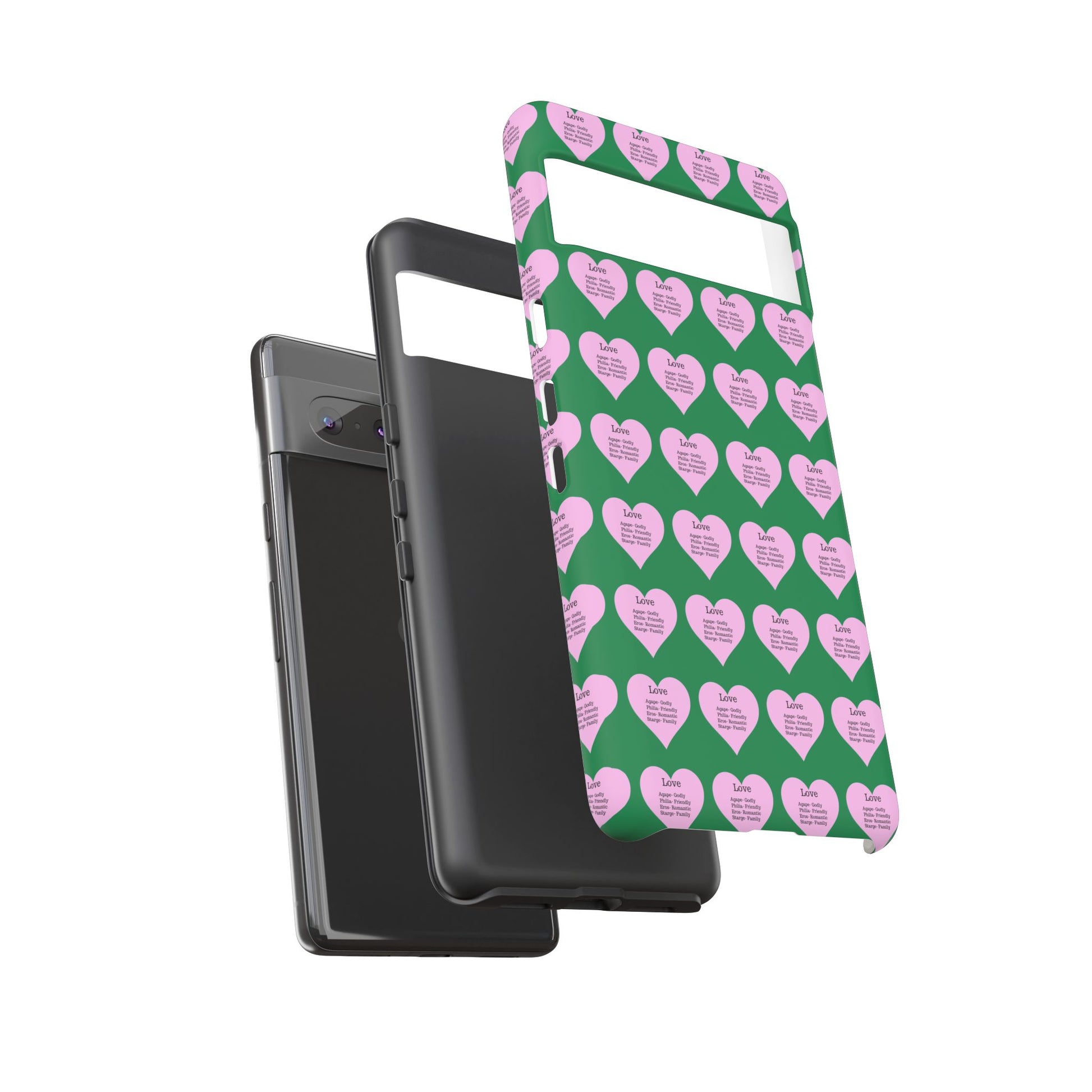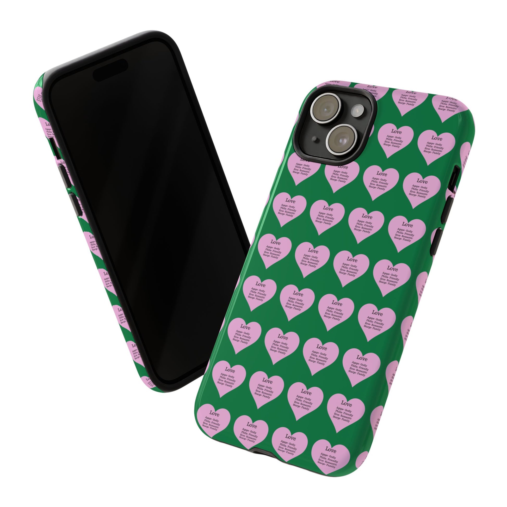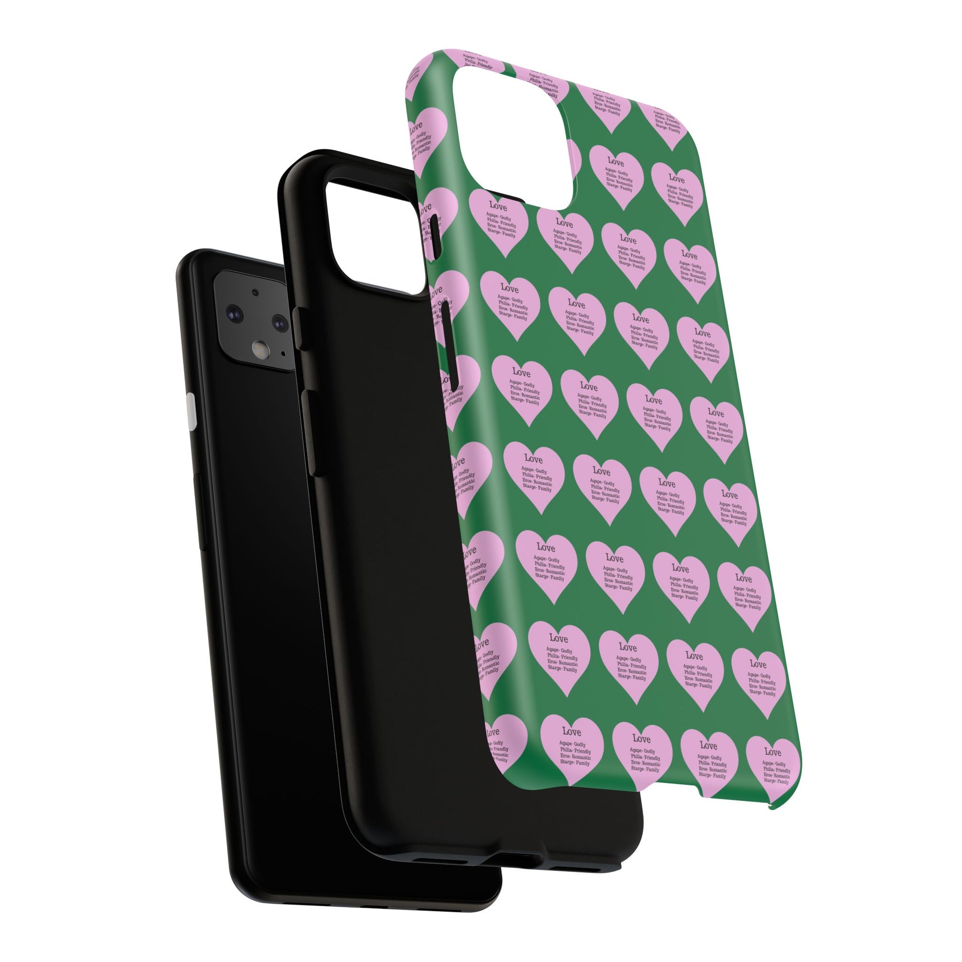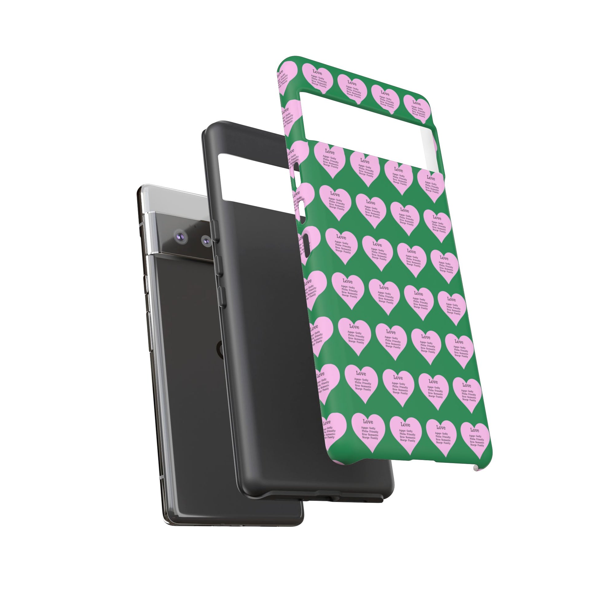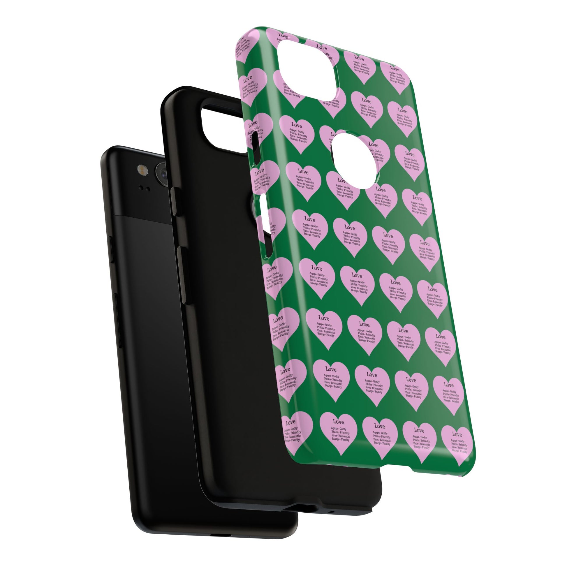 Hearts-A-Flutter Phone Case (iPhone, Google Pixel)(Dark green)