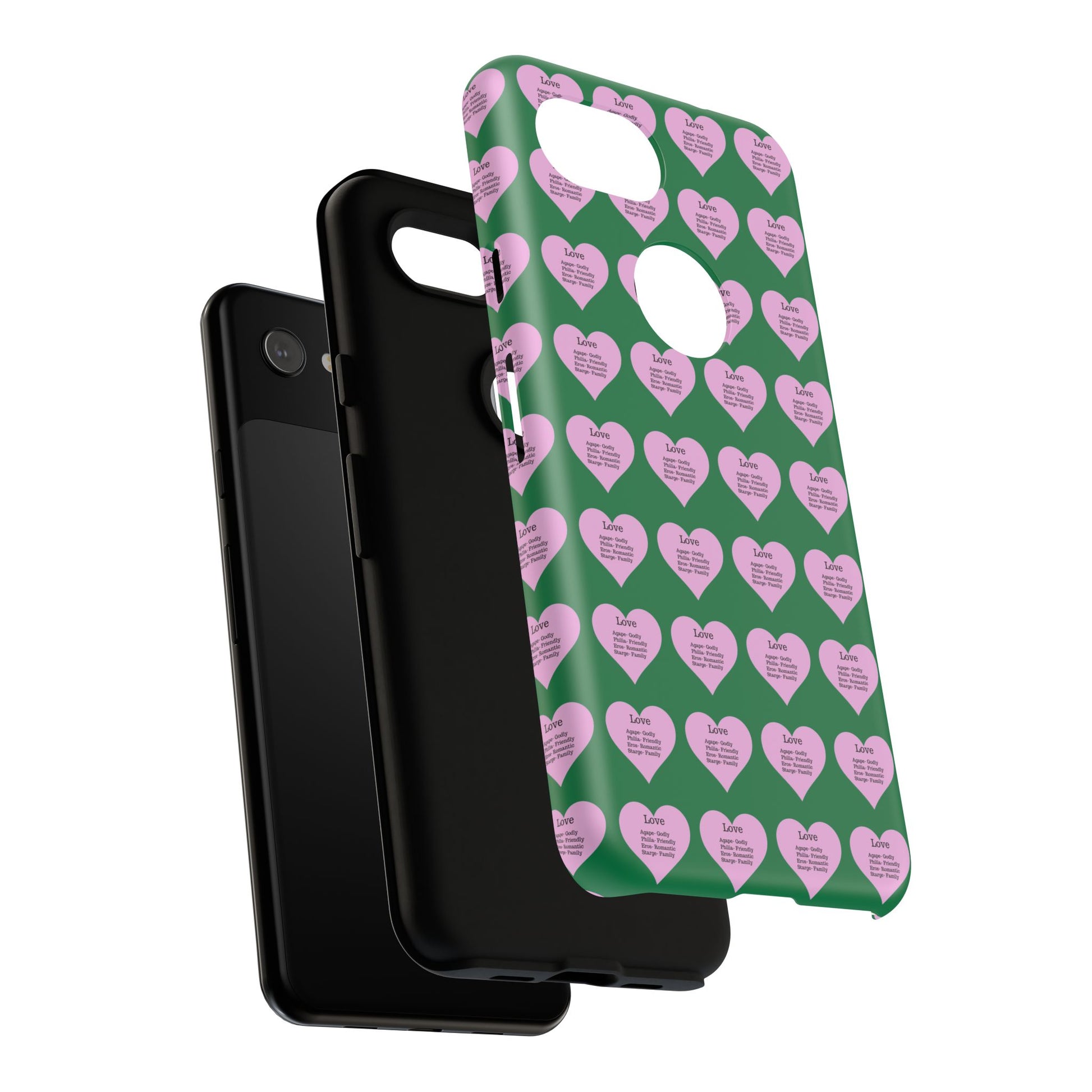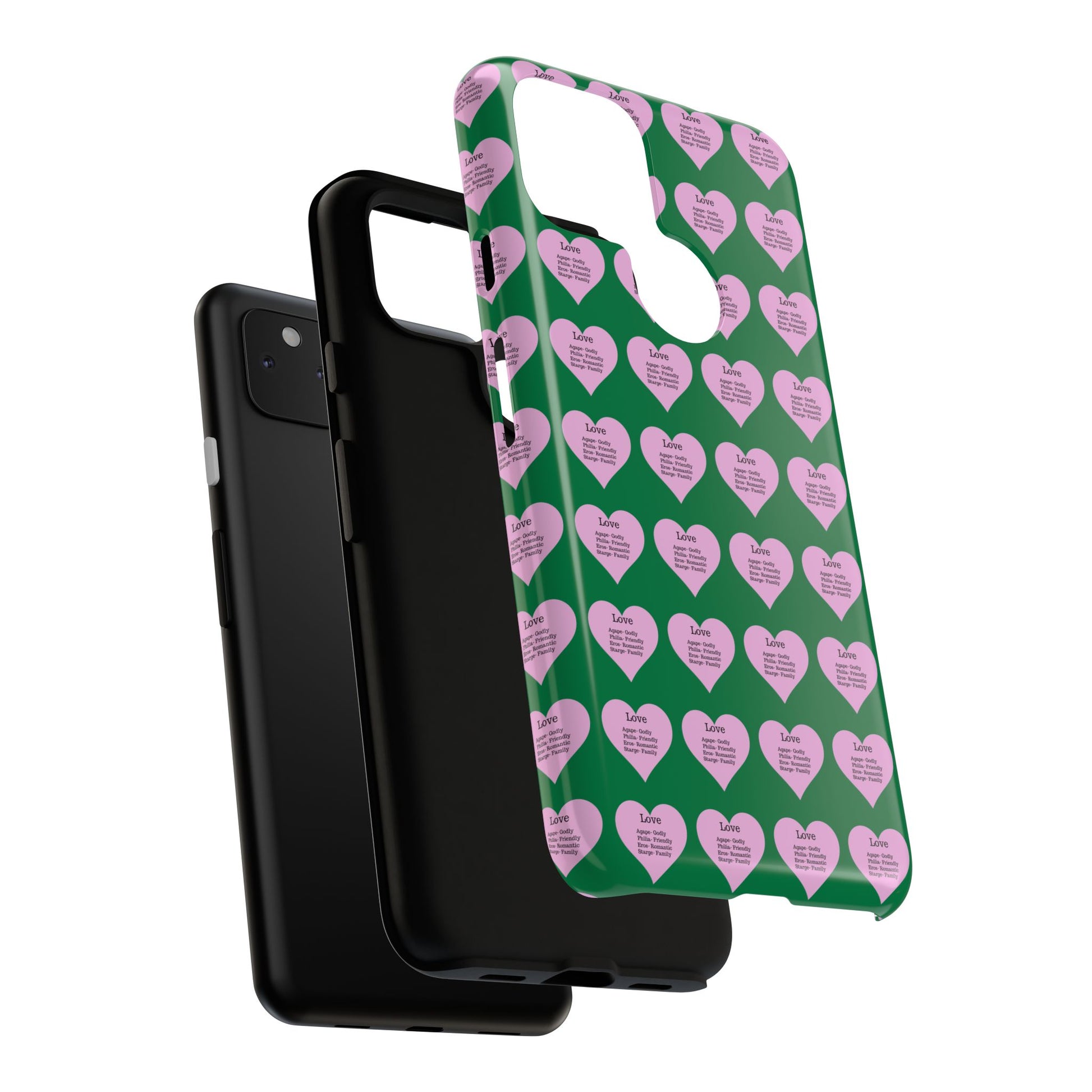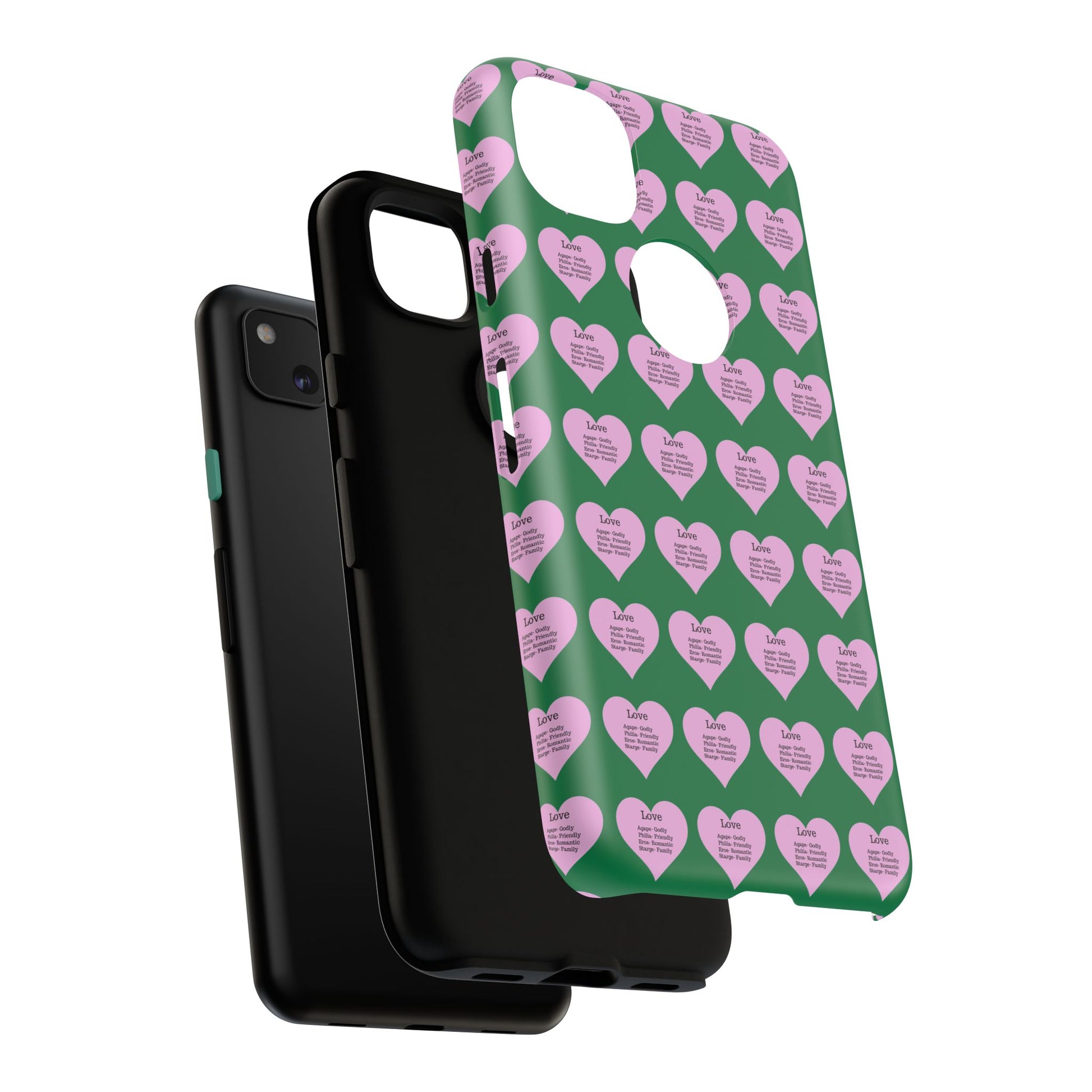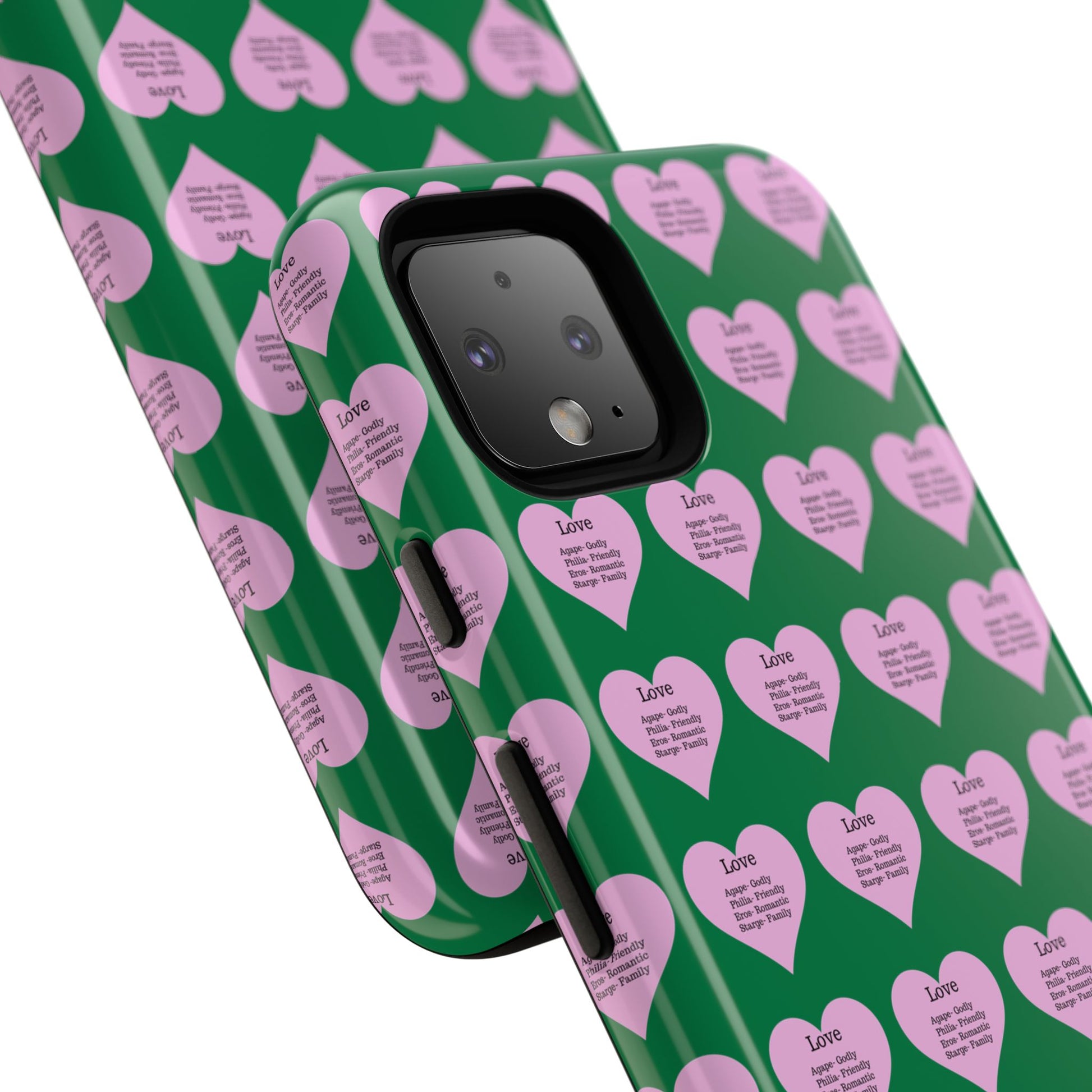 Hearts-A-Flutter Phone Case (iPhone, Google Pixel)(Dark green)