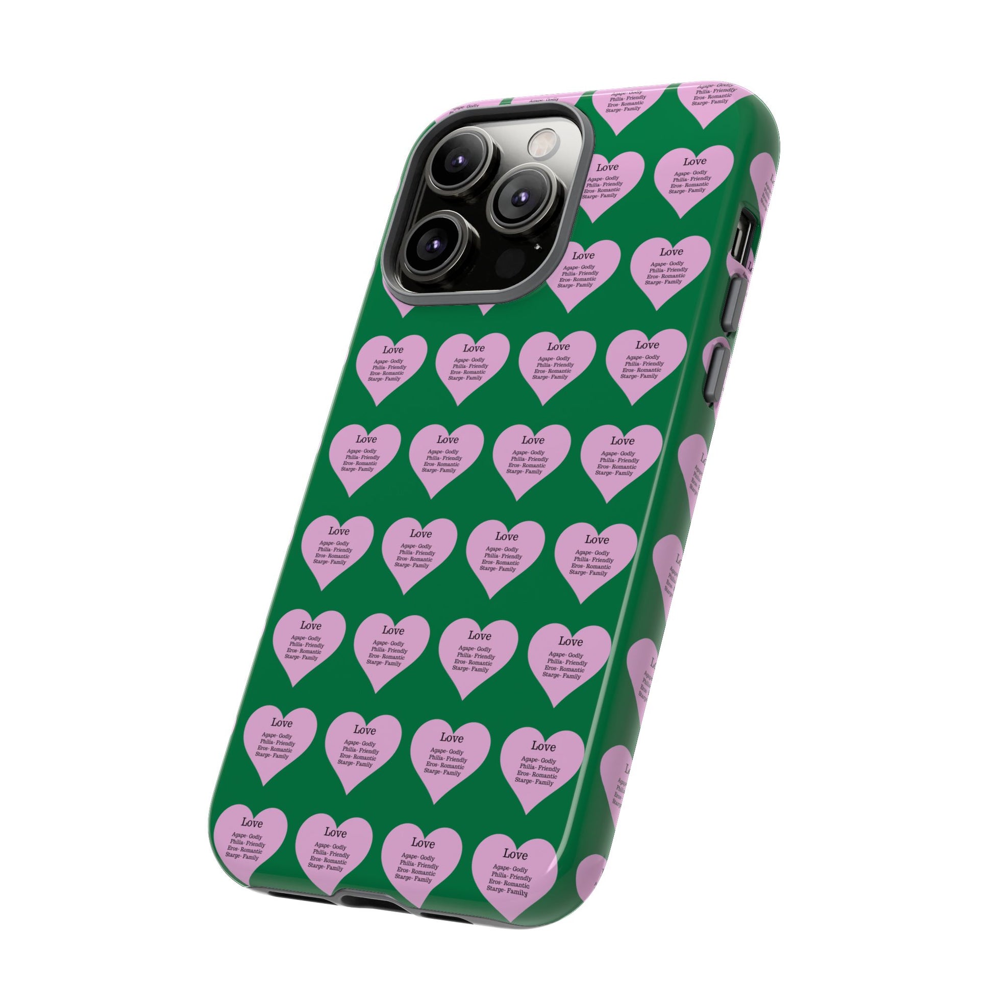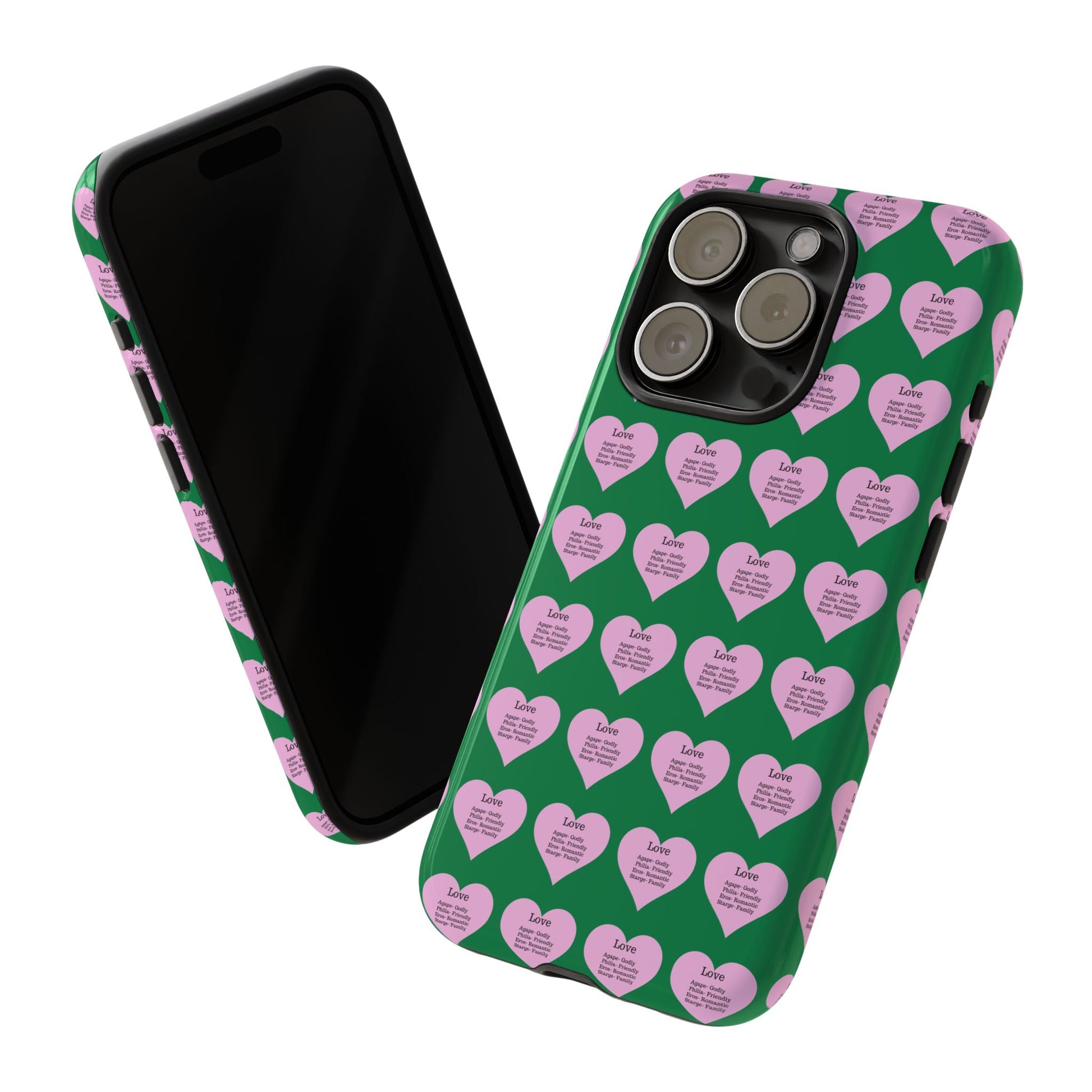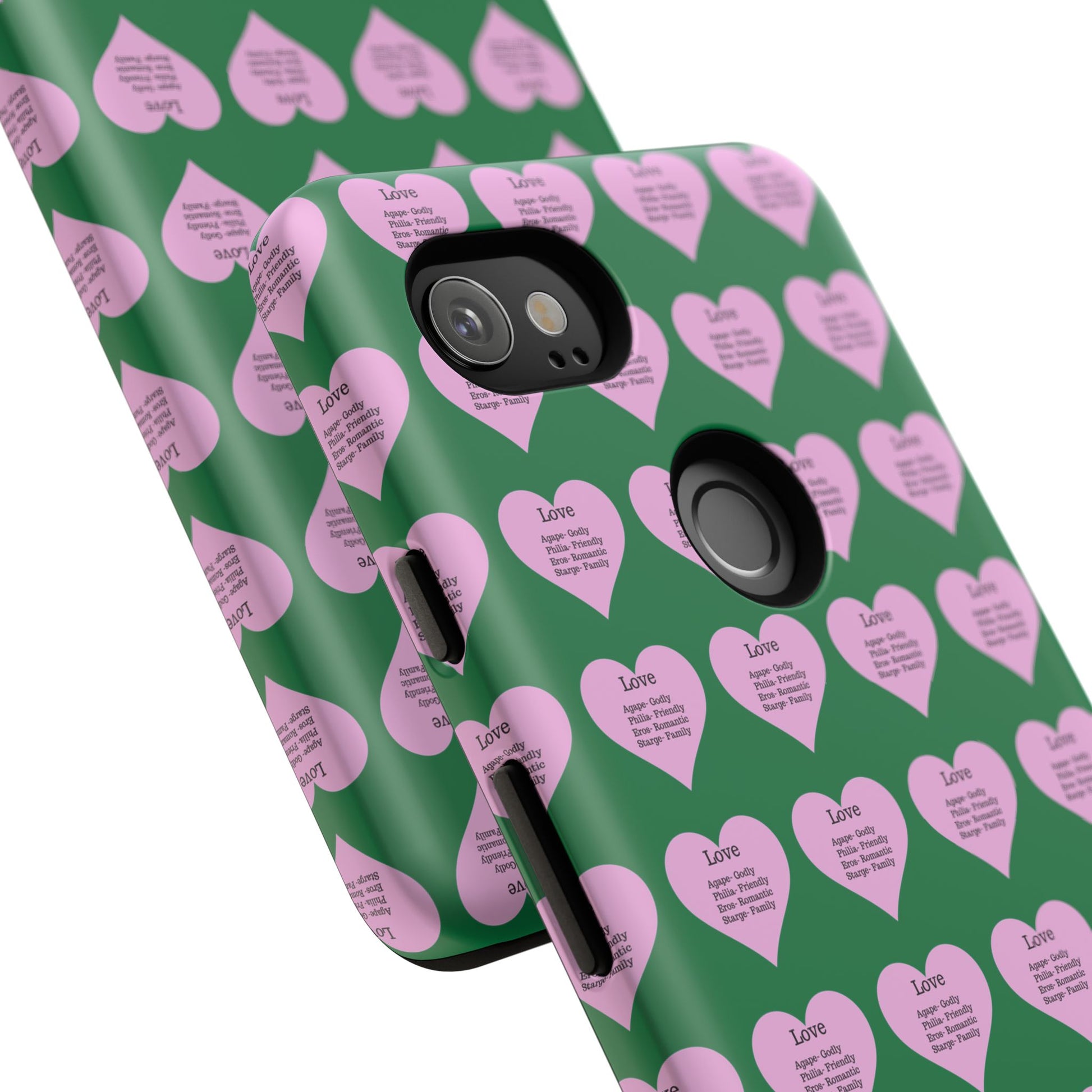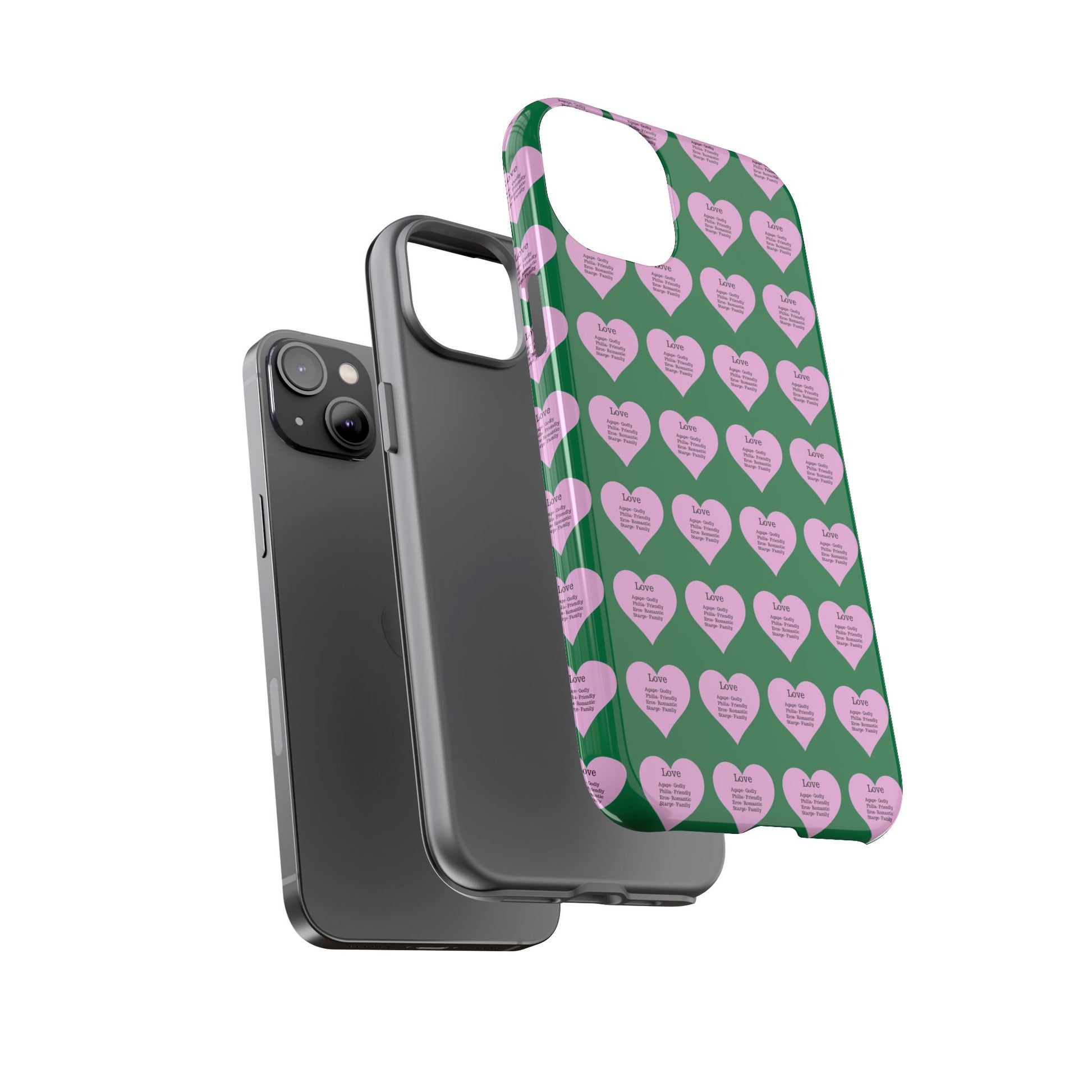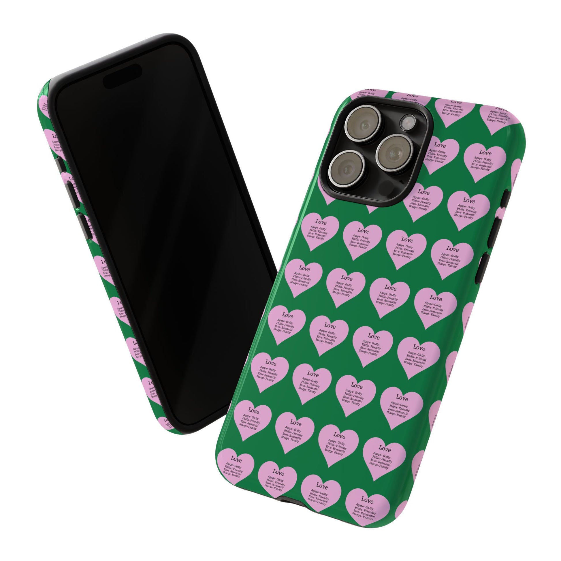Hearts-A-Flutter Phone Case (iPhone, Google Pixel)(Dark green)