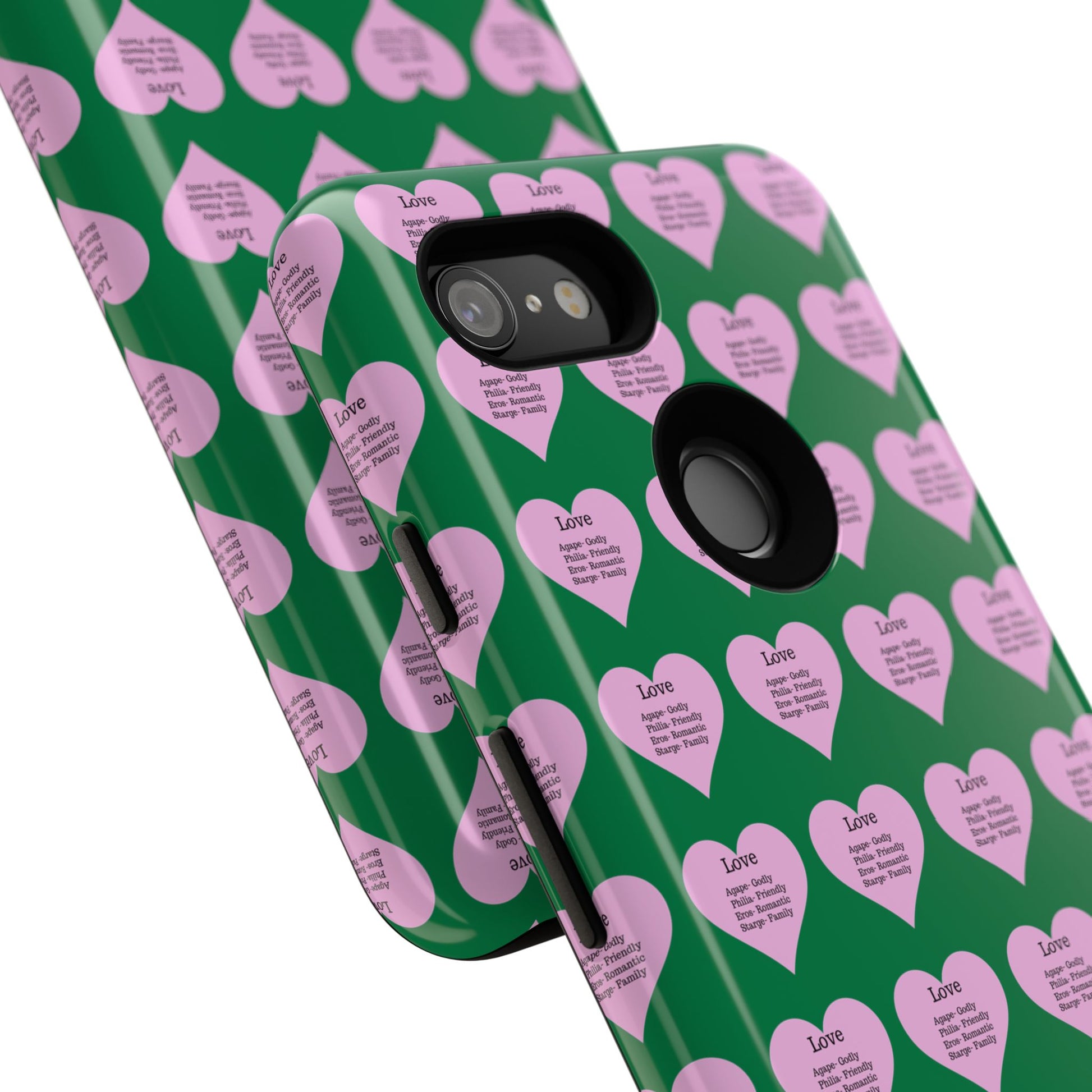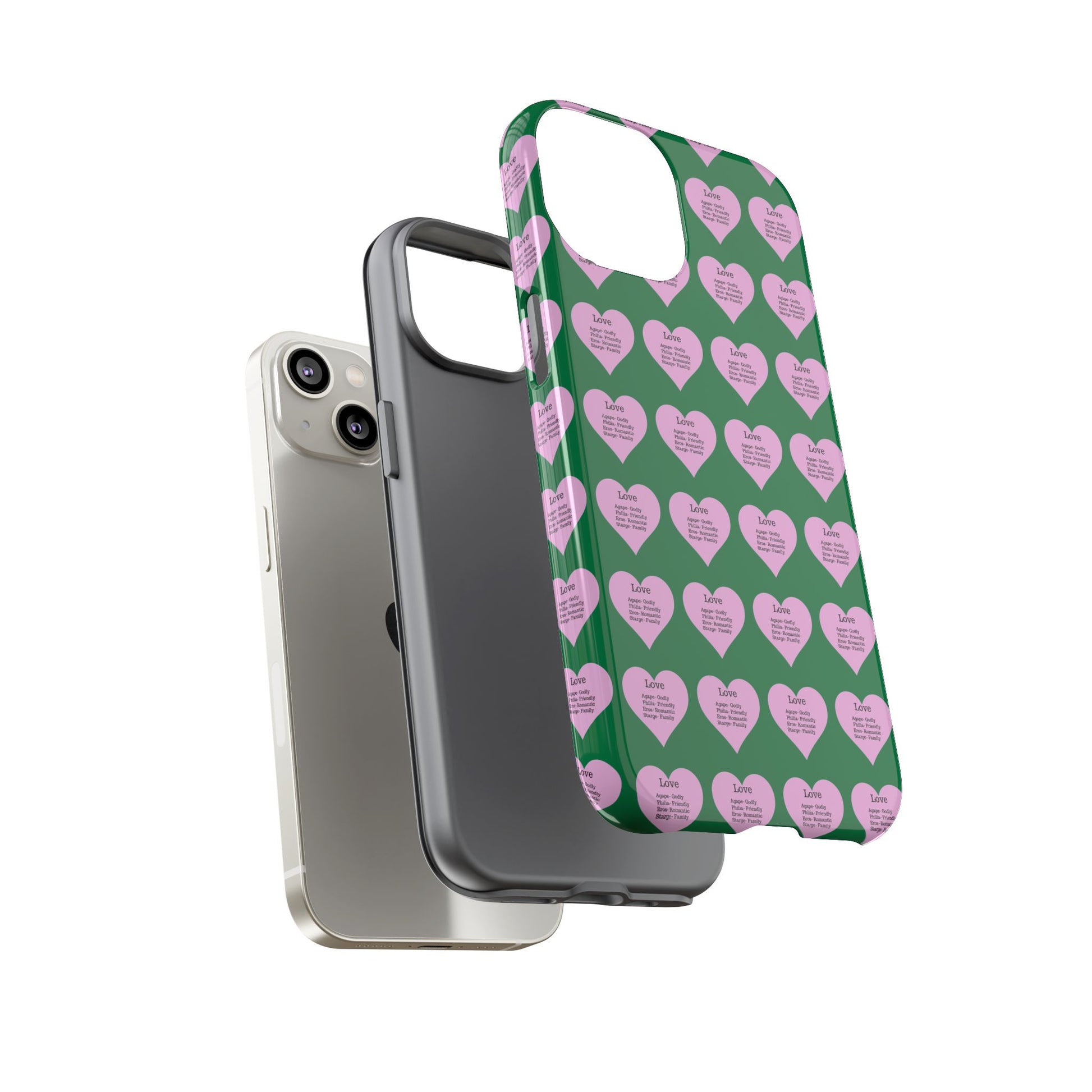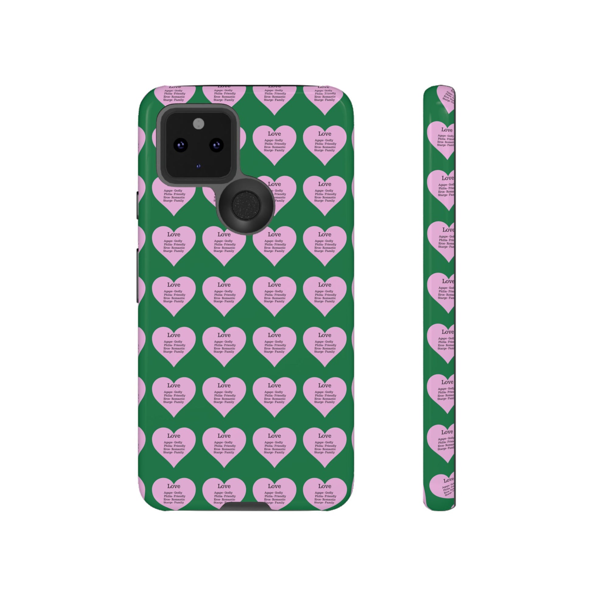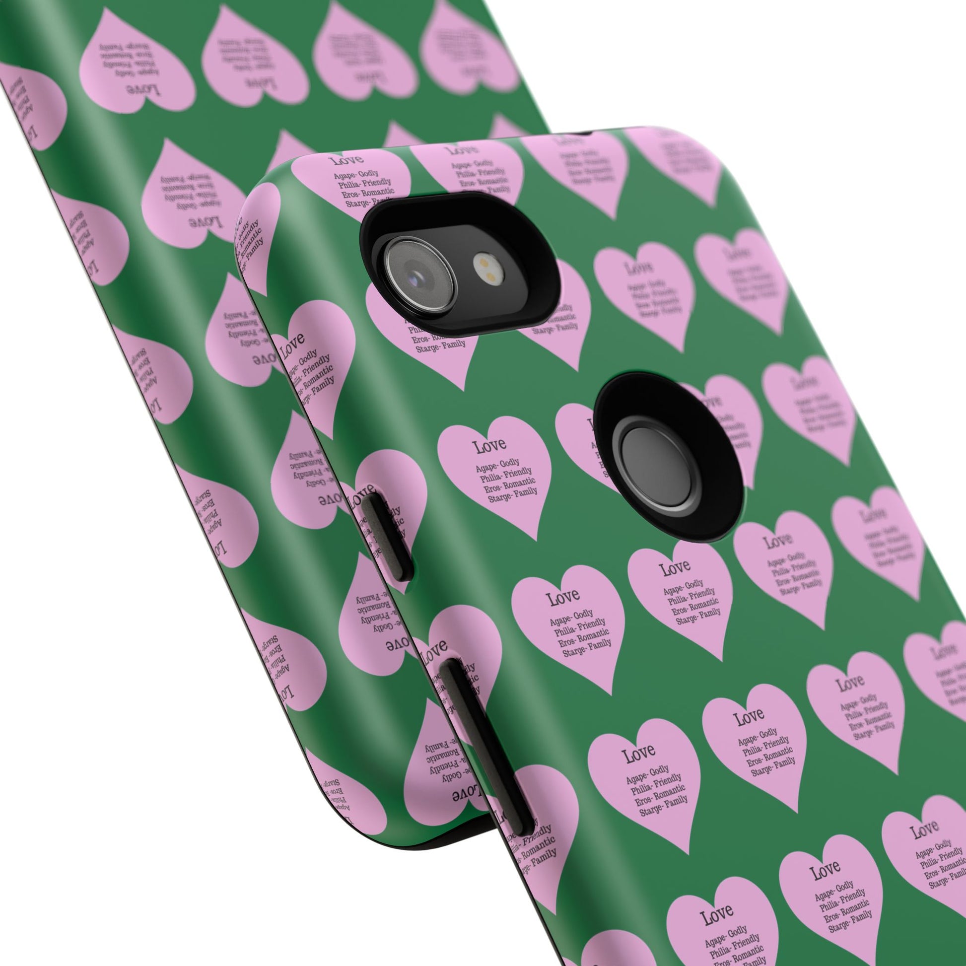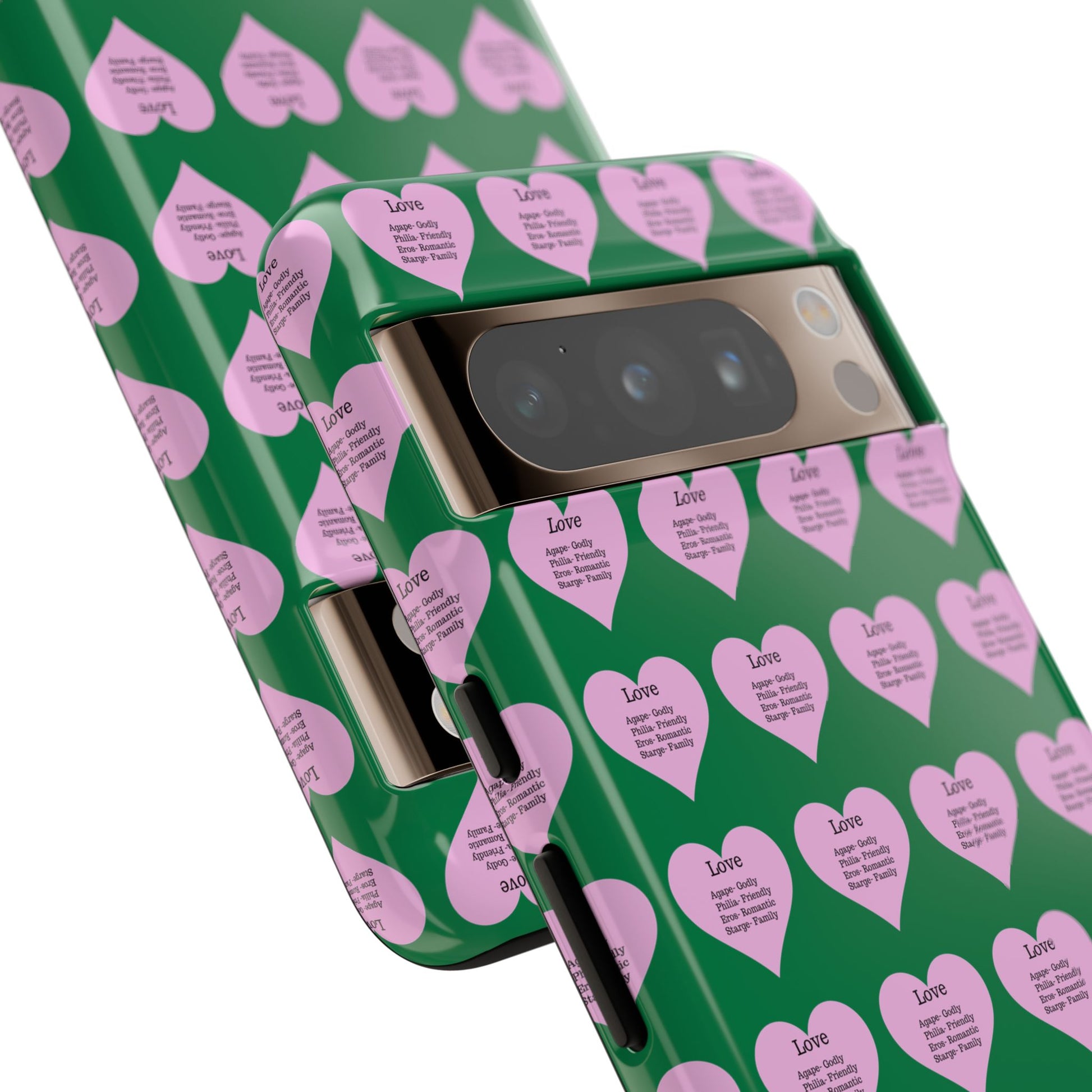 Hearts-A-Flutter Phone Case (iPhone, Google Pixel)(Dark green)