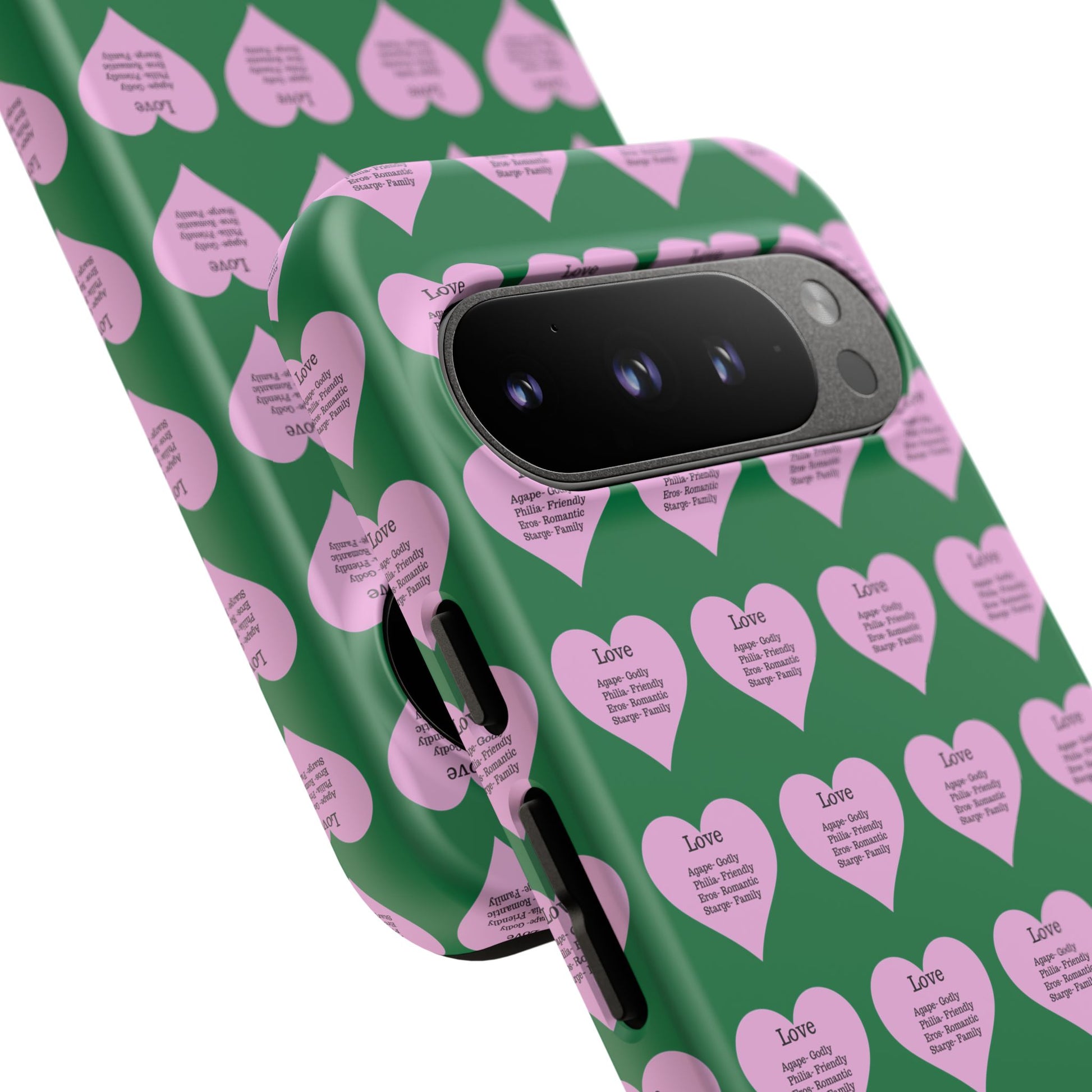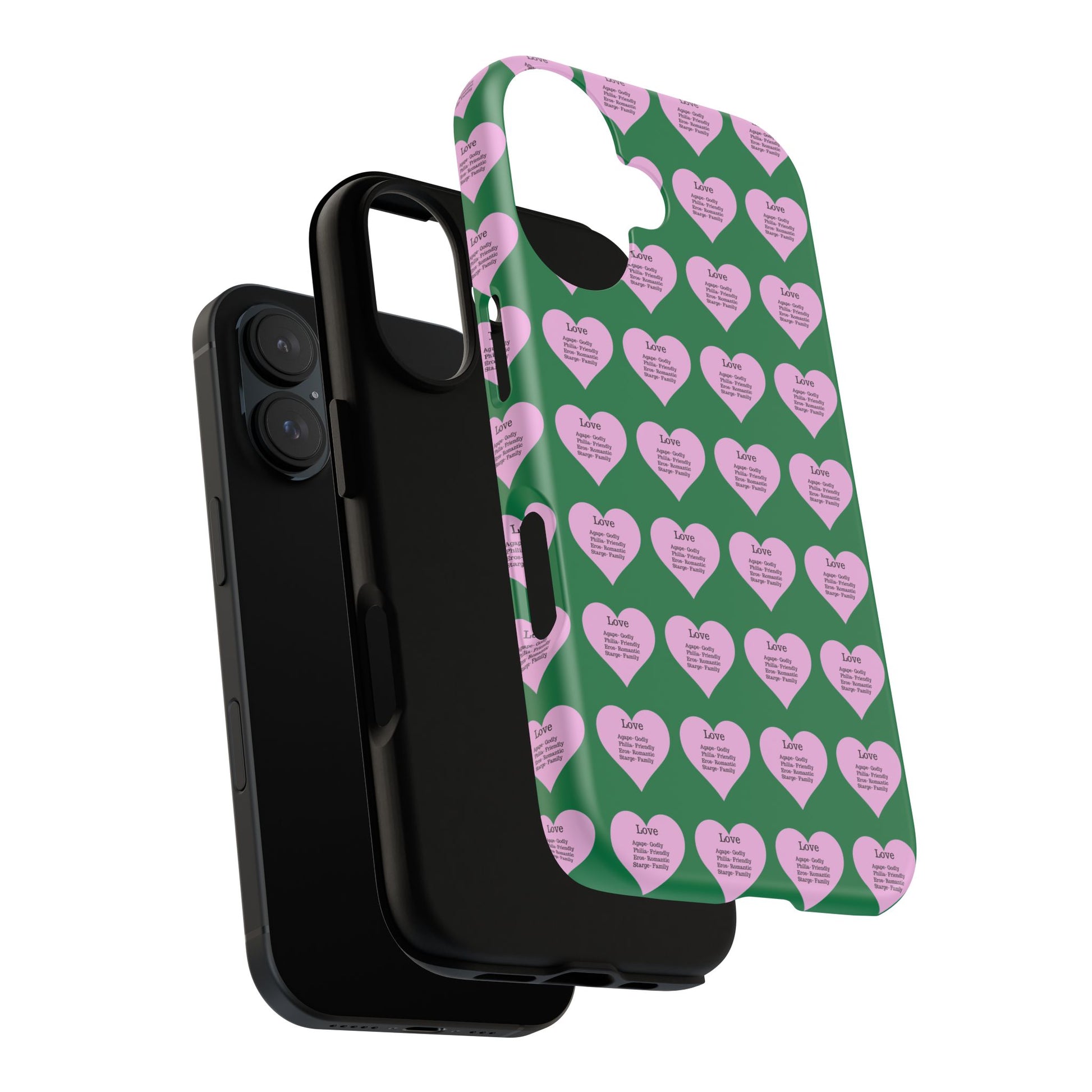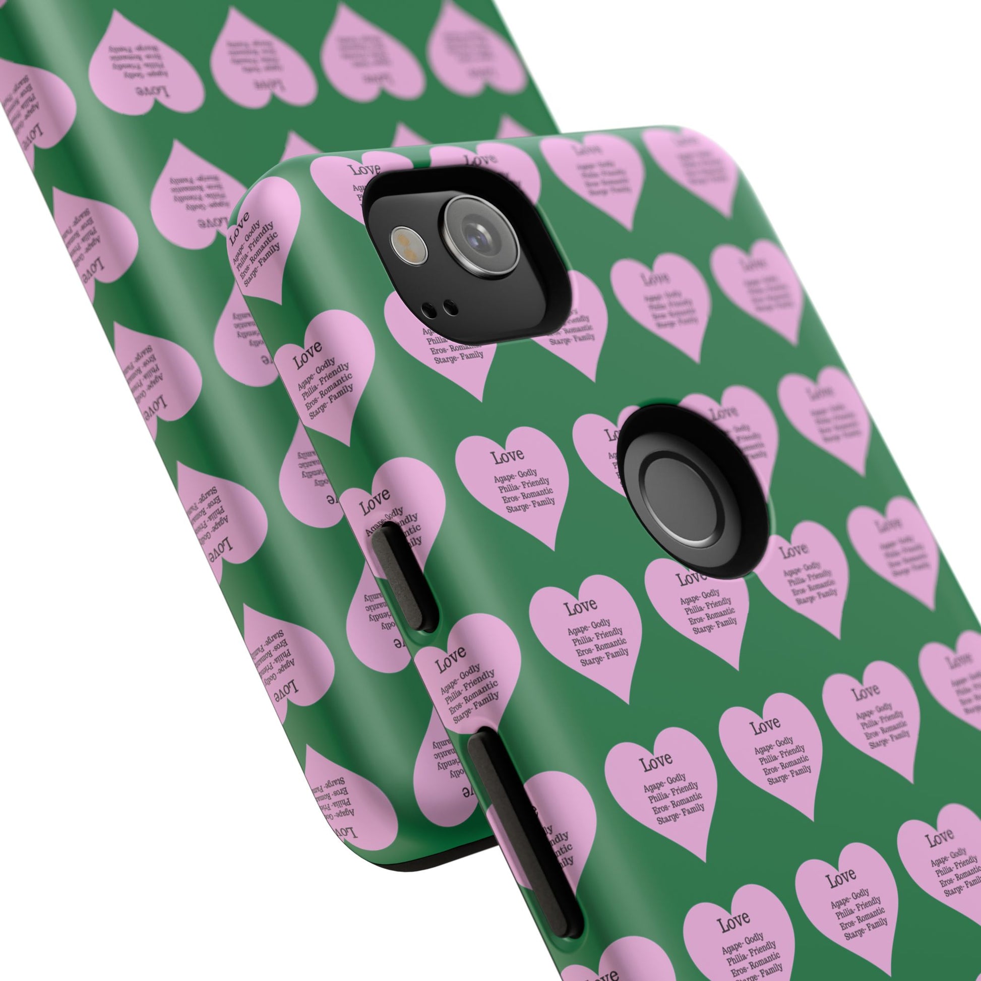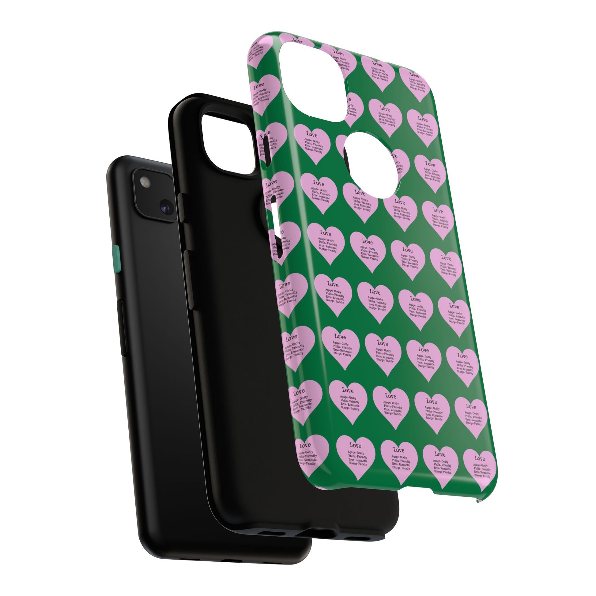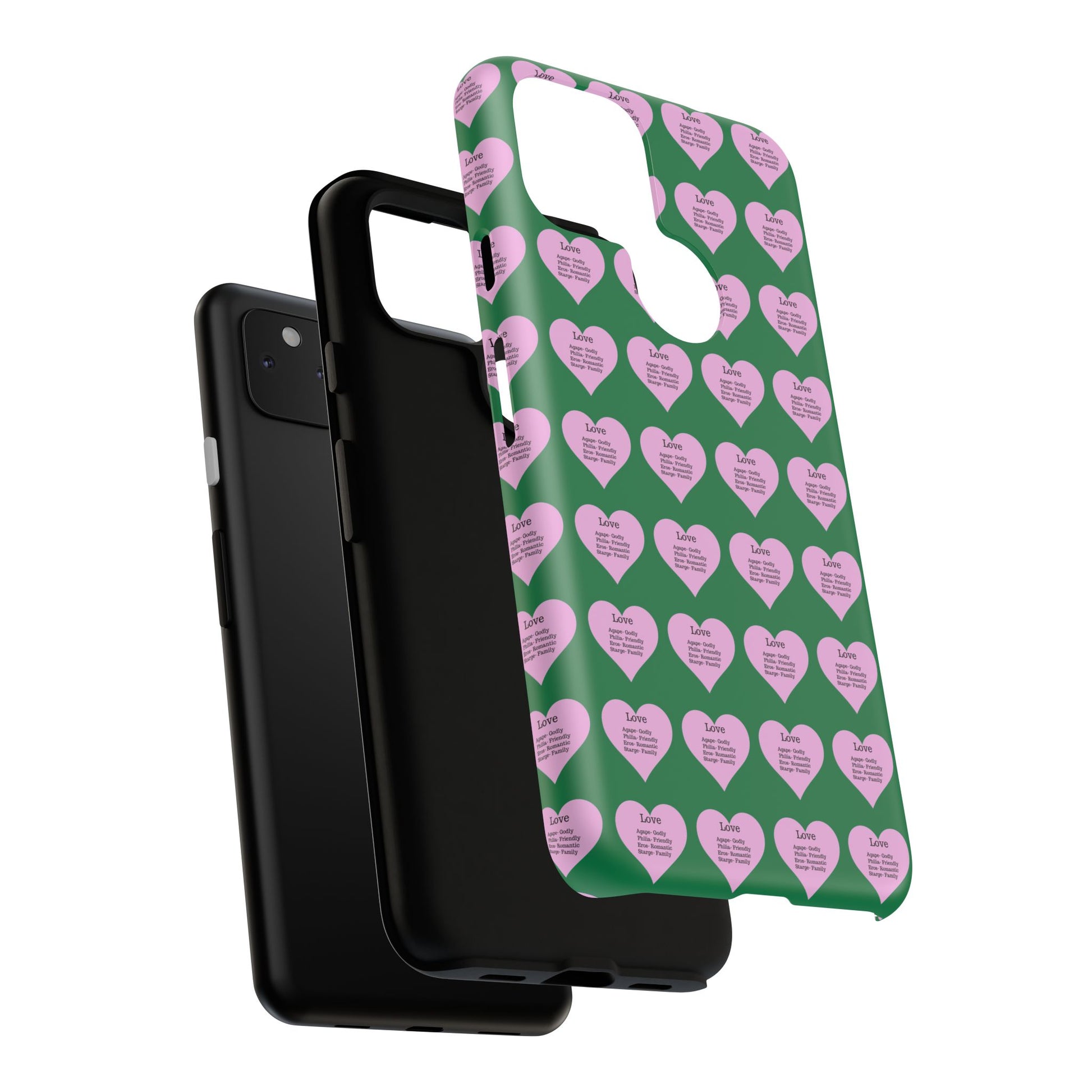 Hearts-A-Flutter Phone Case (iPhone, Google Pixel)(Dark green)