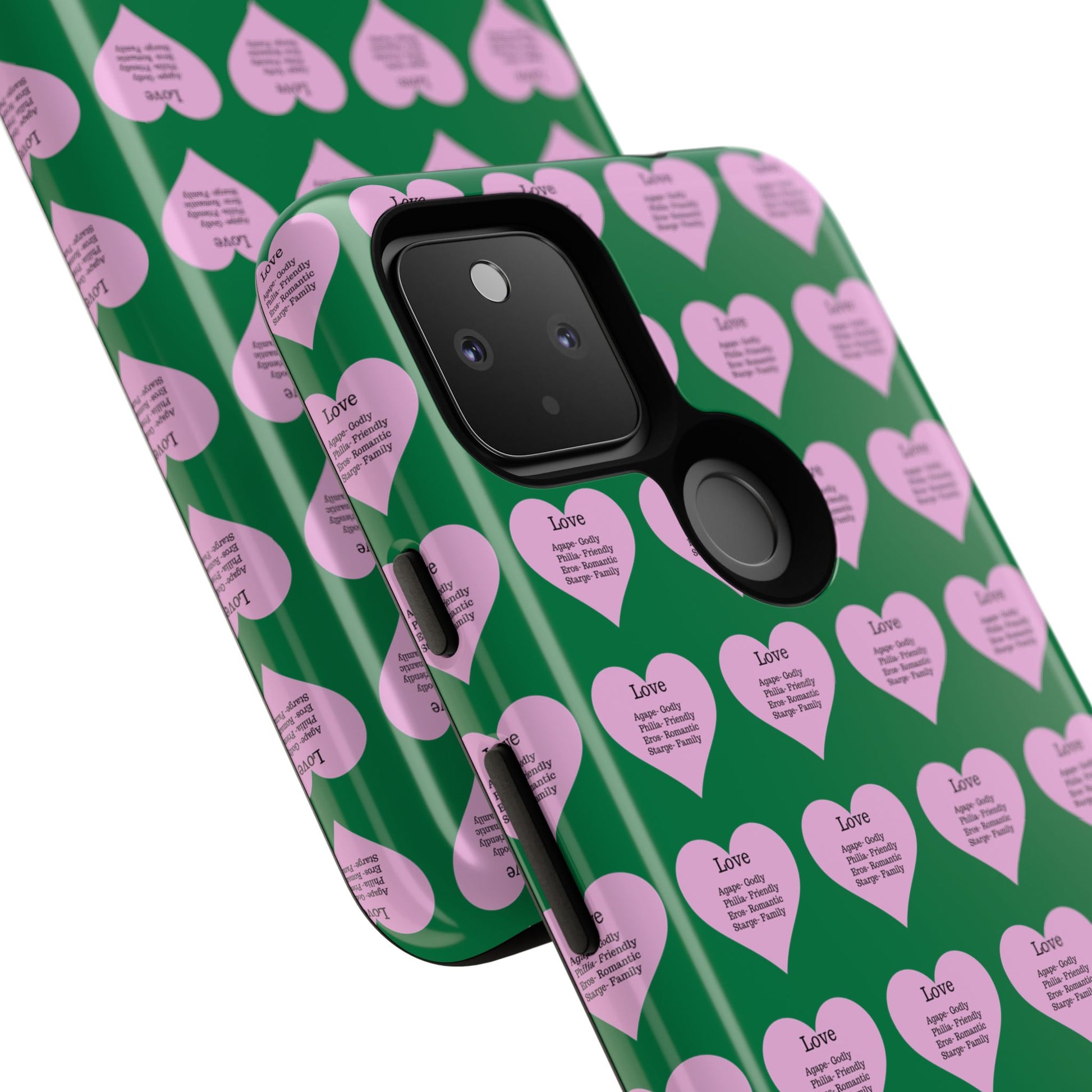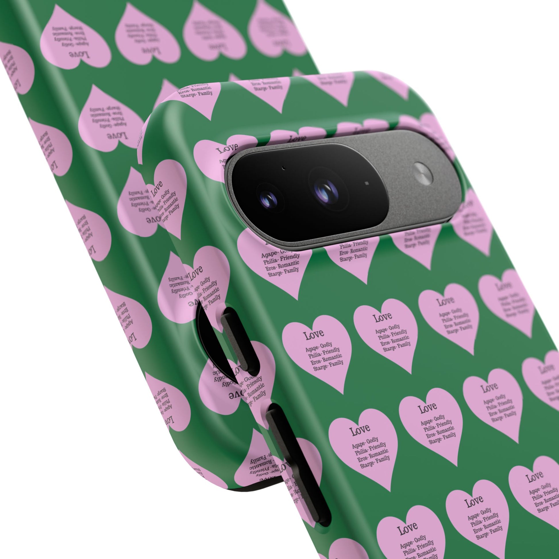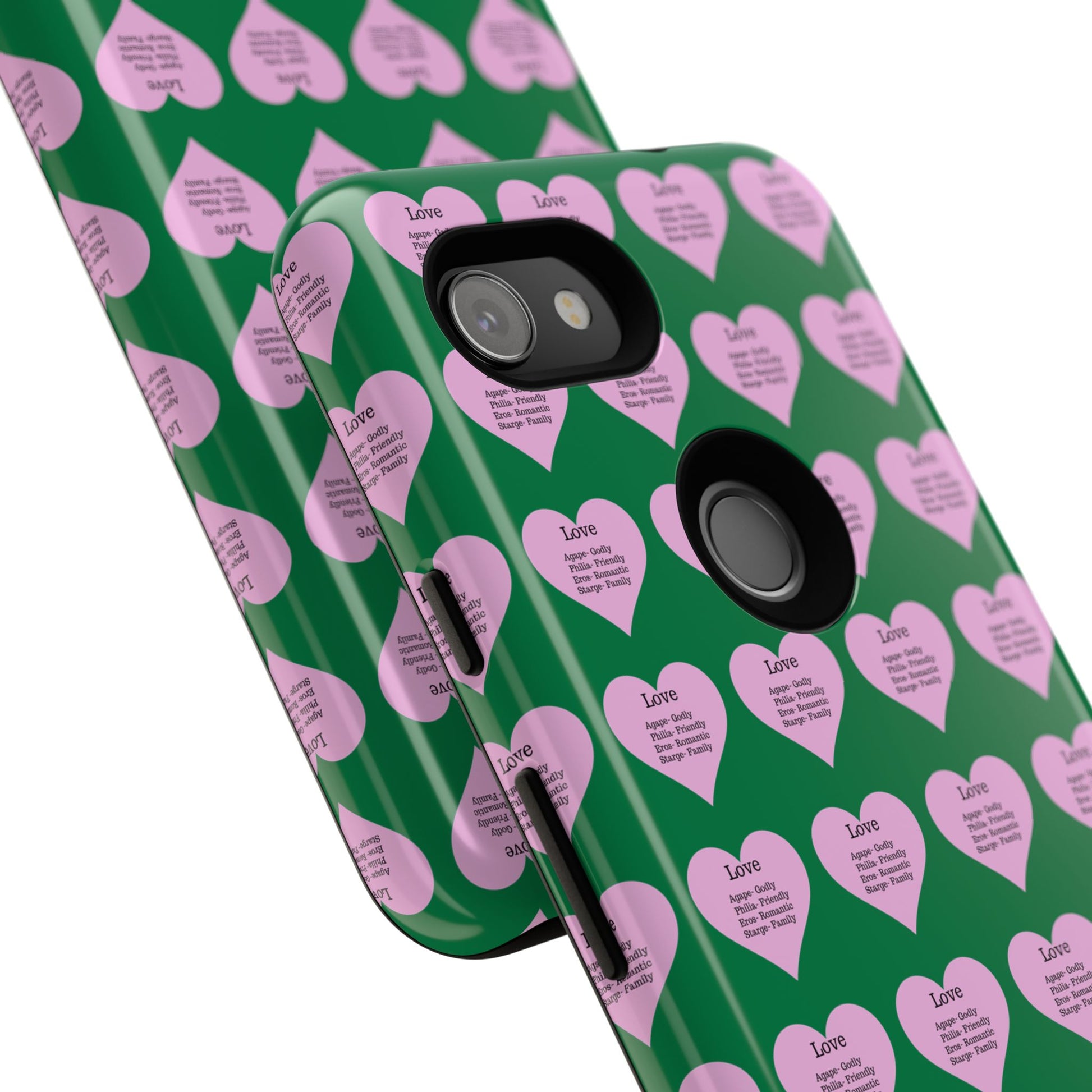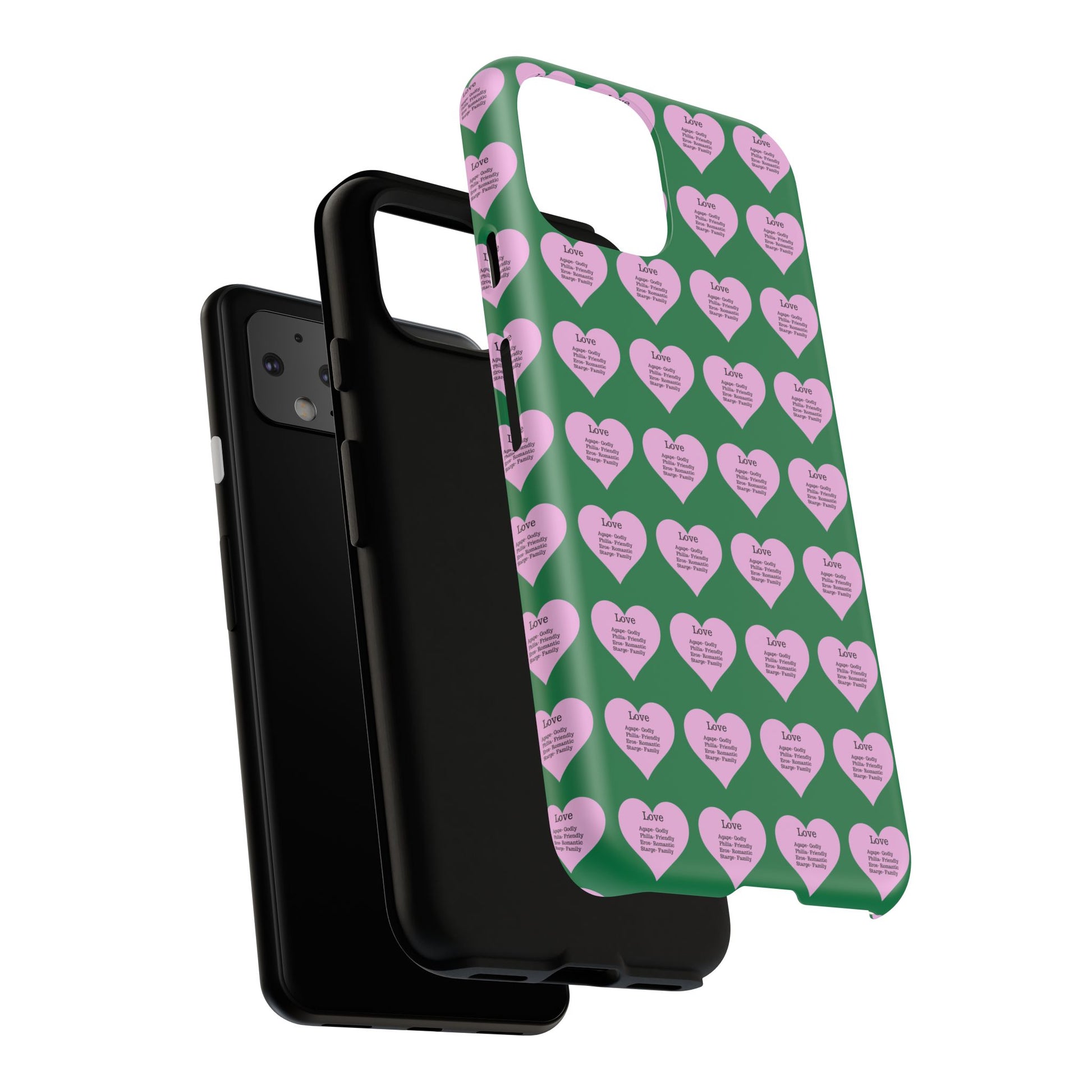 Hearts-A-Flutter Phone Case (iPhone, Google Pixel)(Dark green)