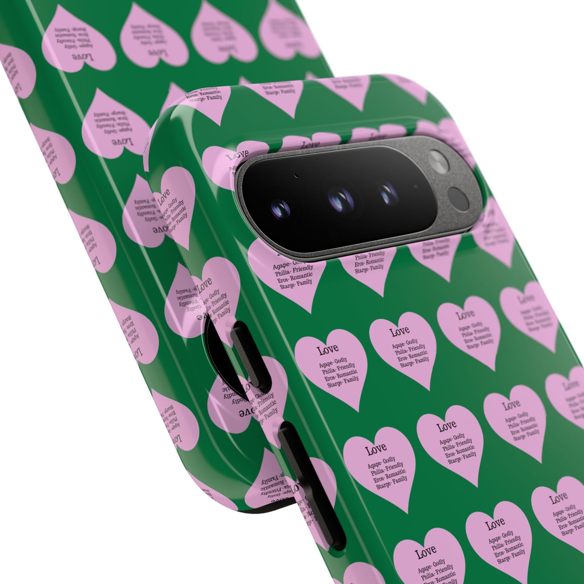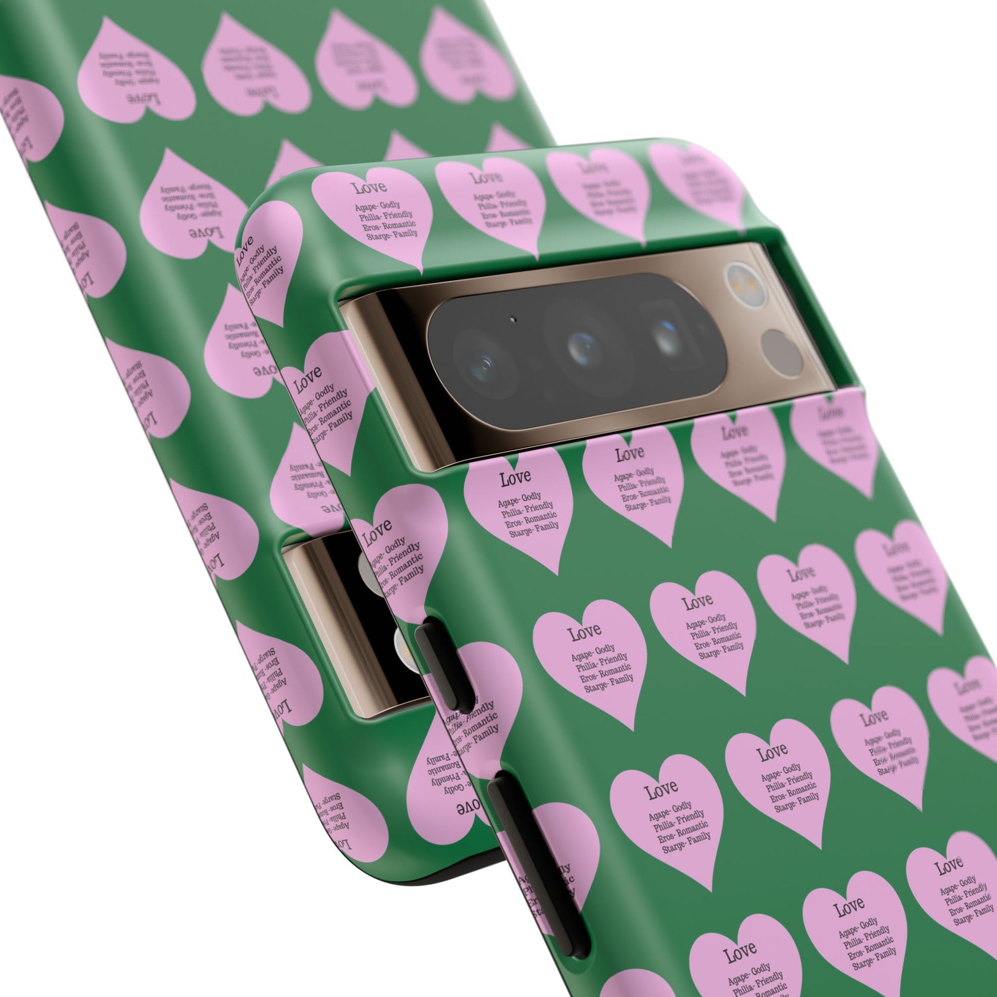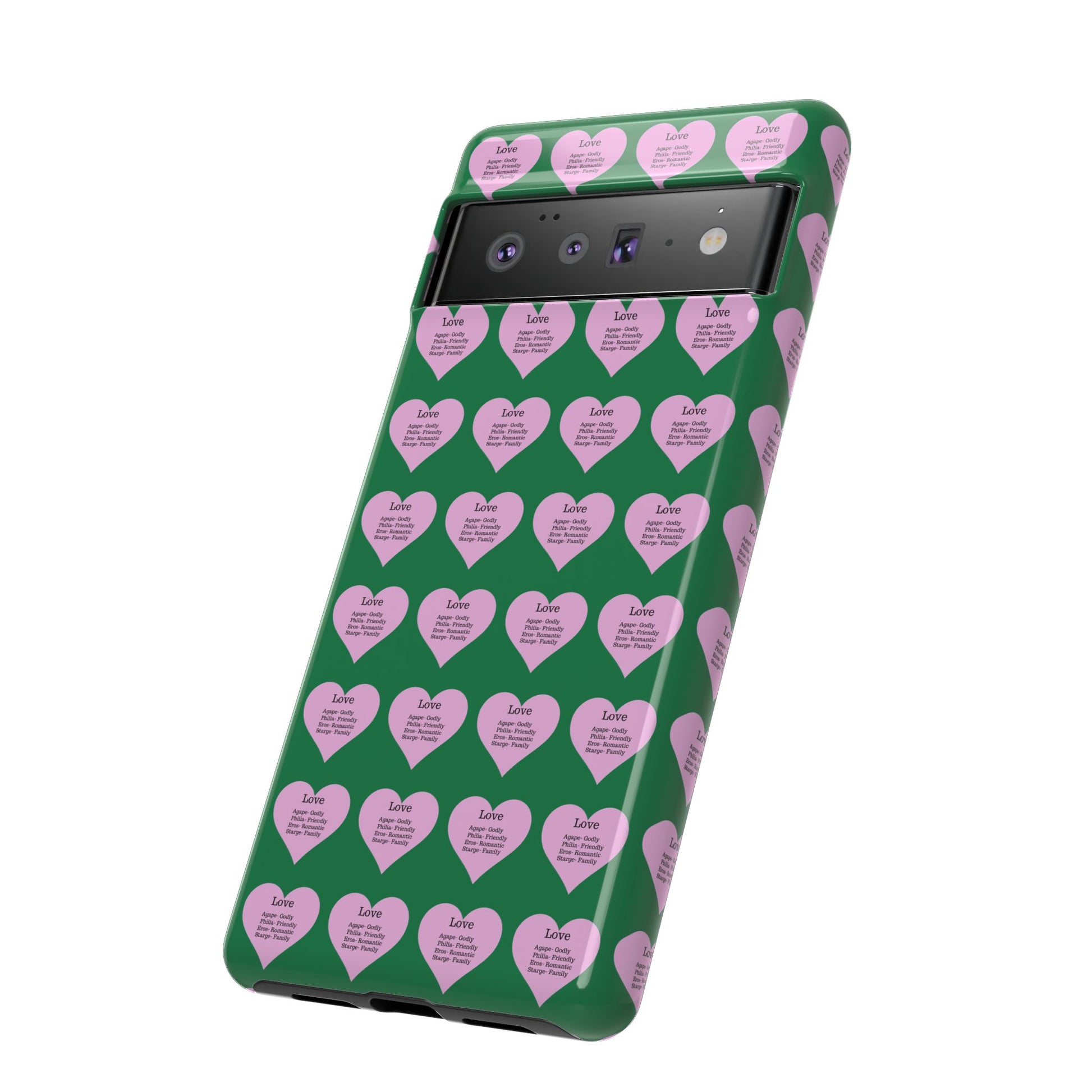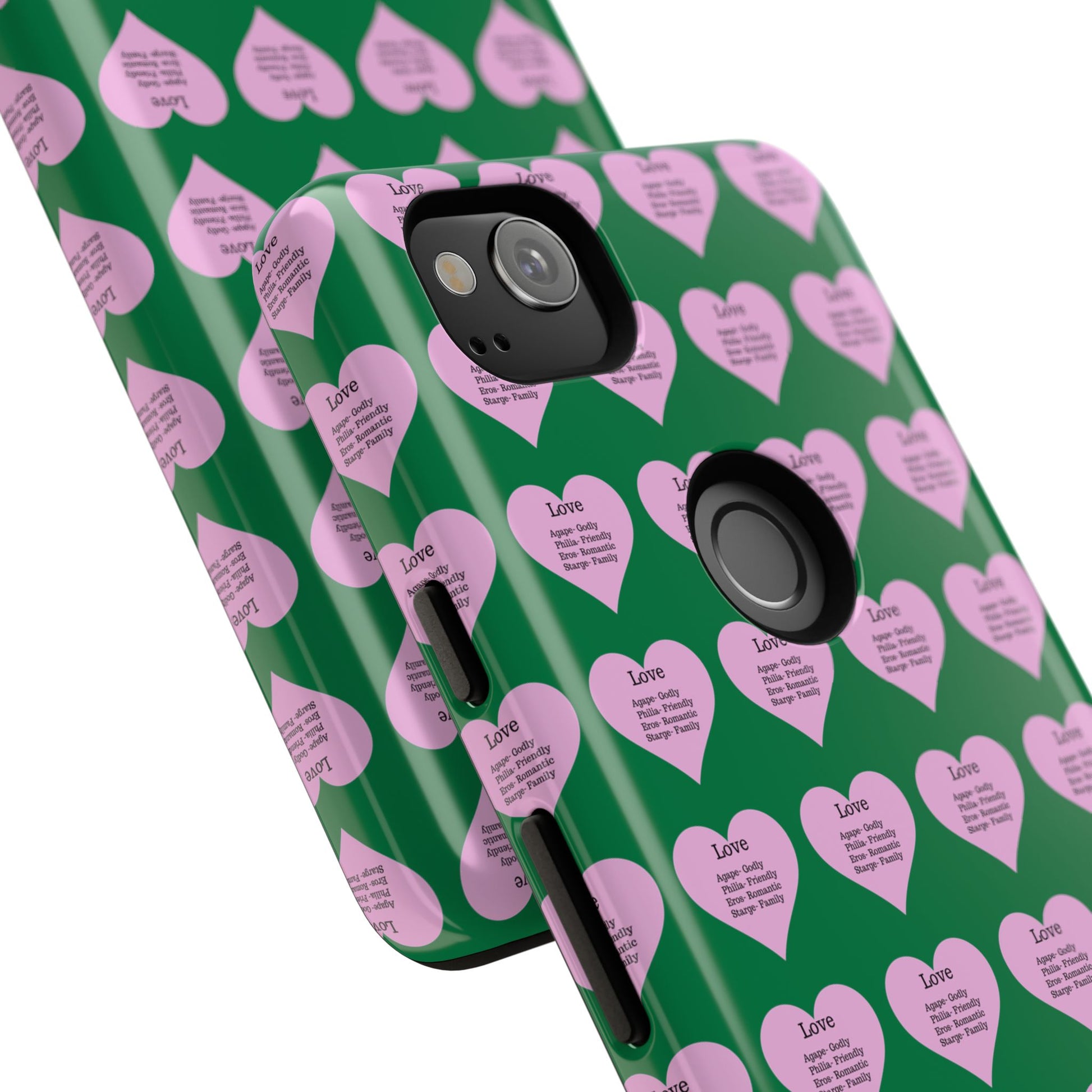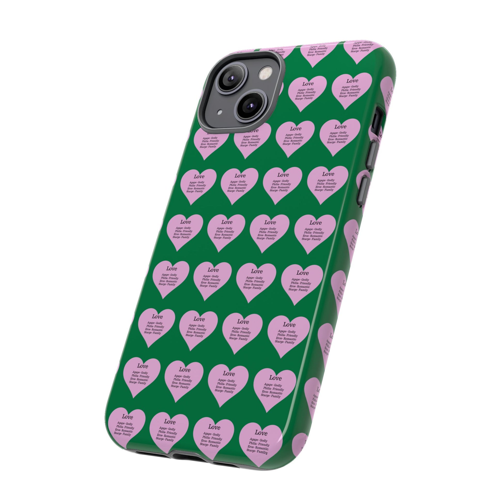 Hearts-A-Flutter Phone Case (iPhone, Google Pixel)(Dark green)