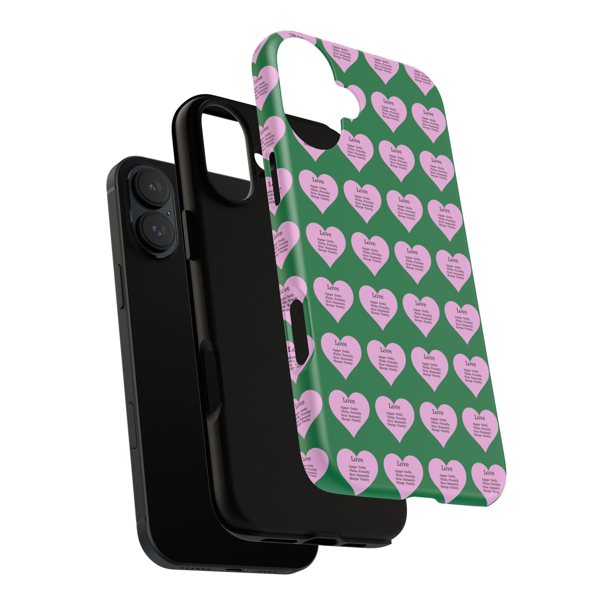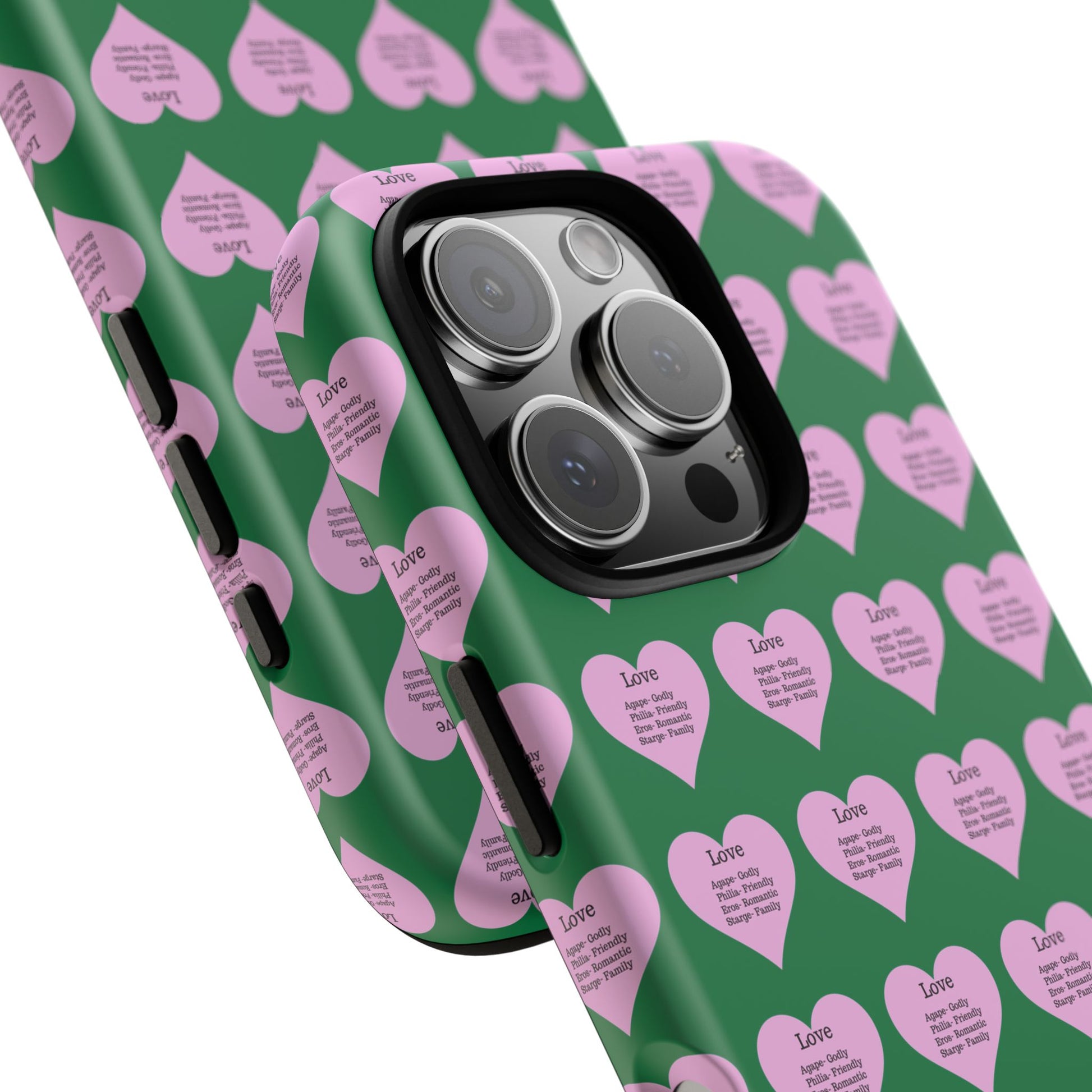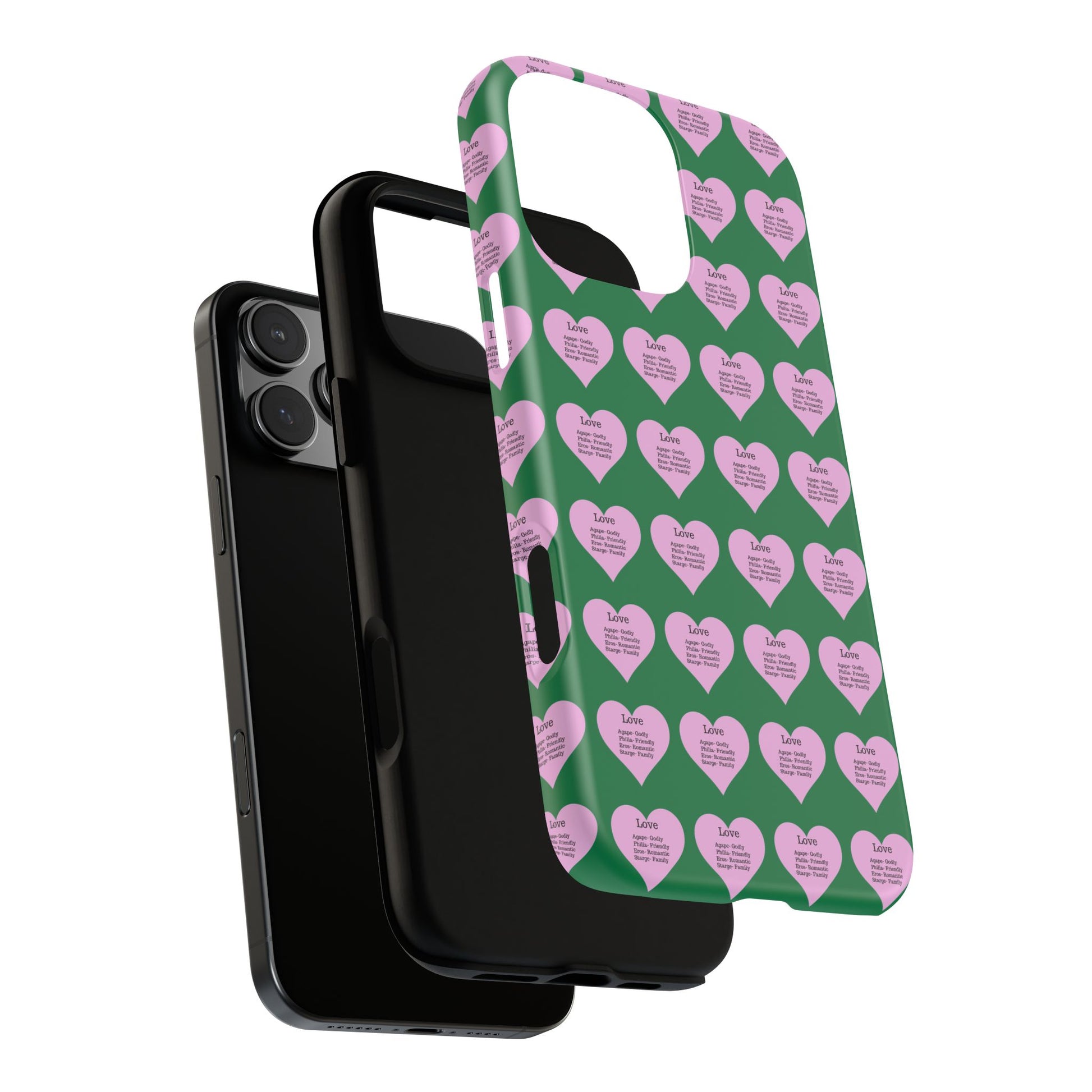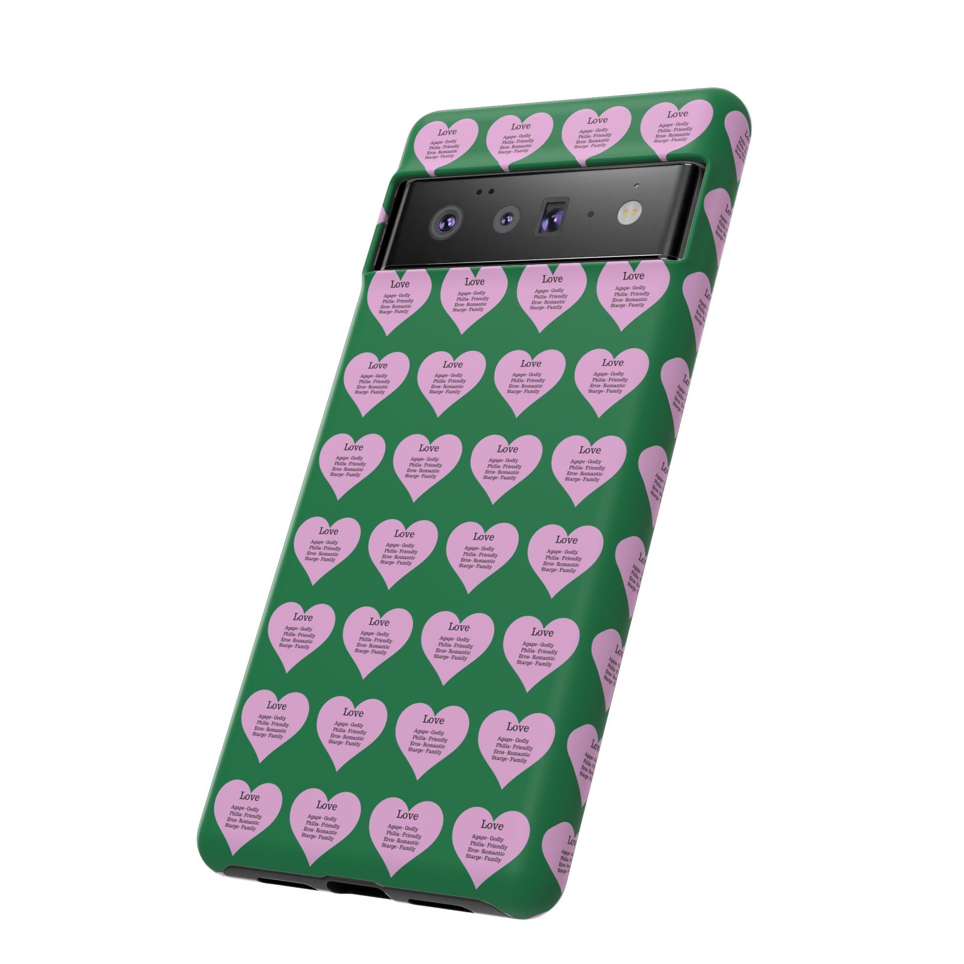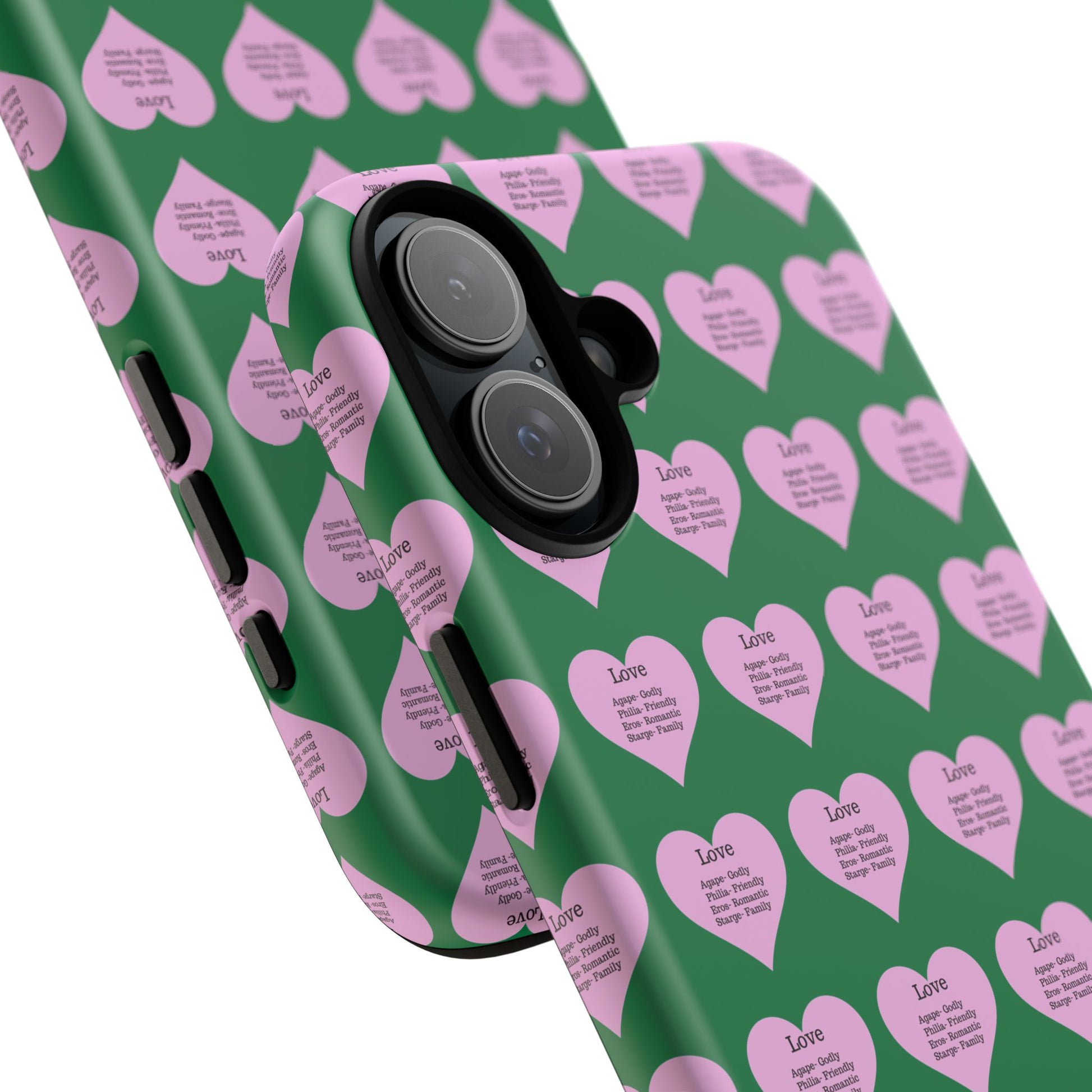 Hearts-A-Flutter Phone Case (iPhone, Google Pixel)(Dark green)