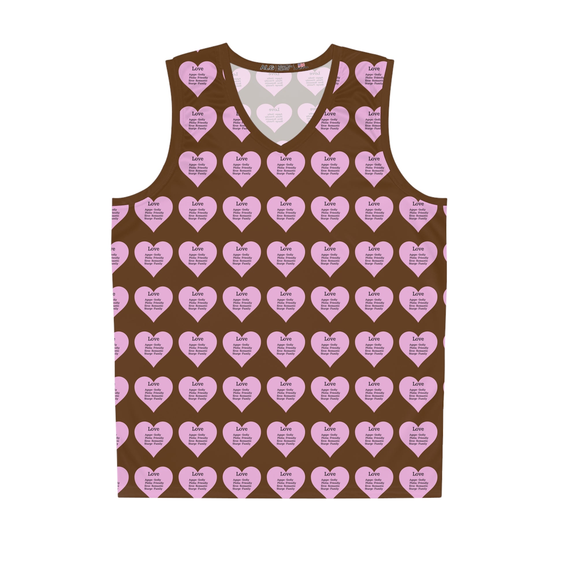 Love Heart All-Over-Print Basketball Jersey (Brown)