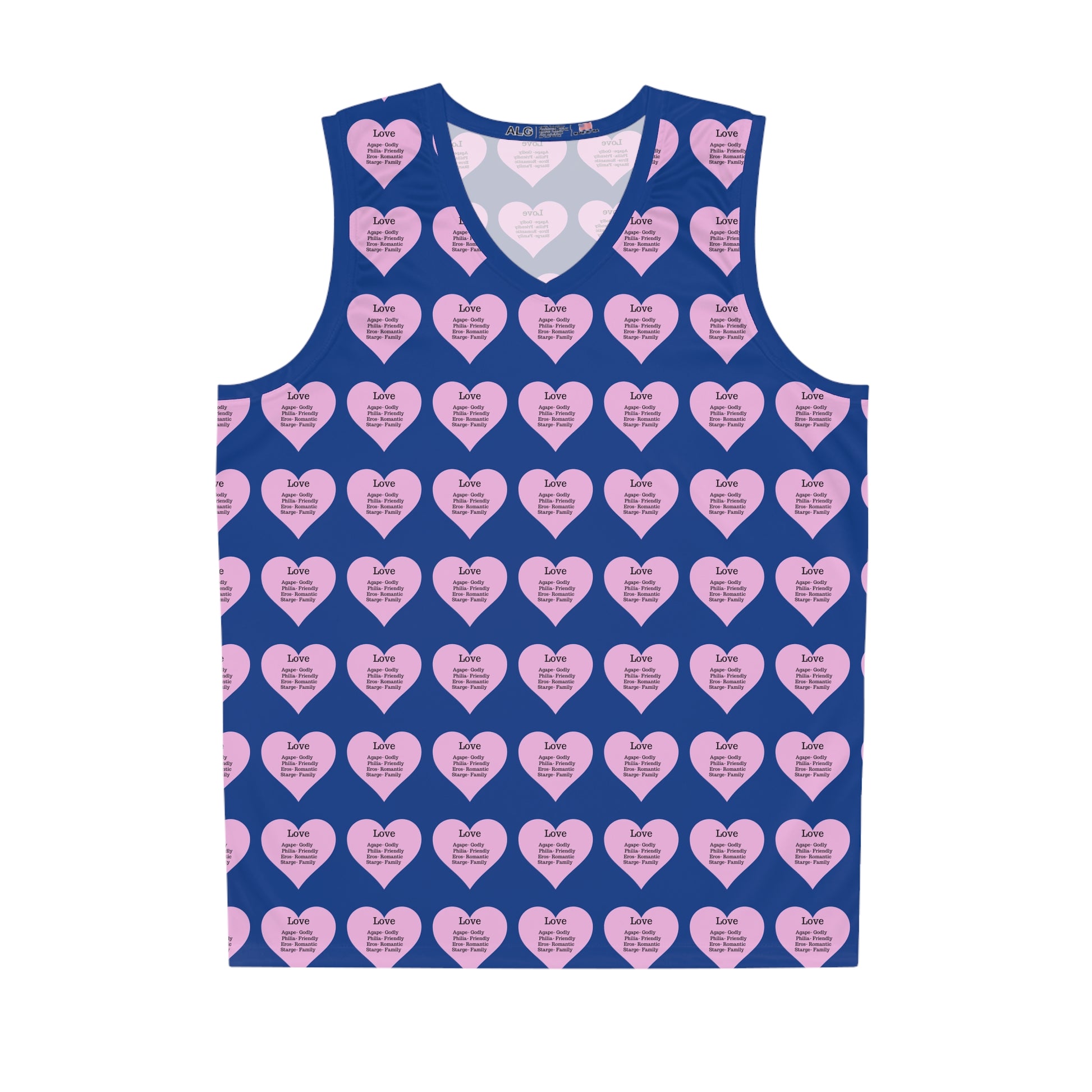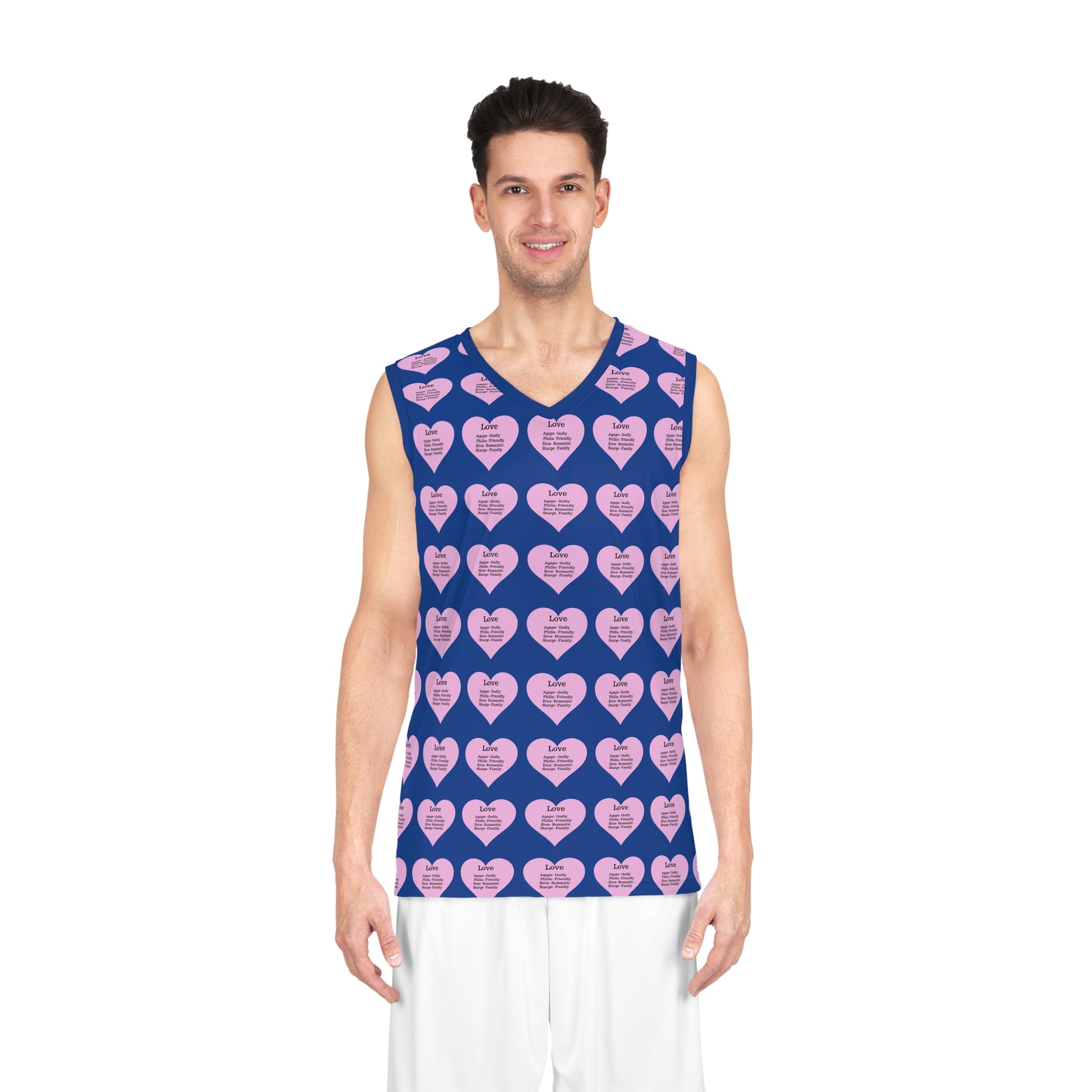 Love Heart All-Over-Print Basketball Jersey (Dark Blue)