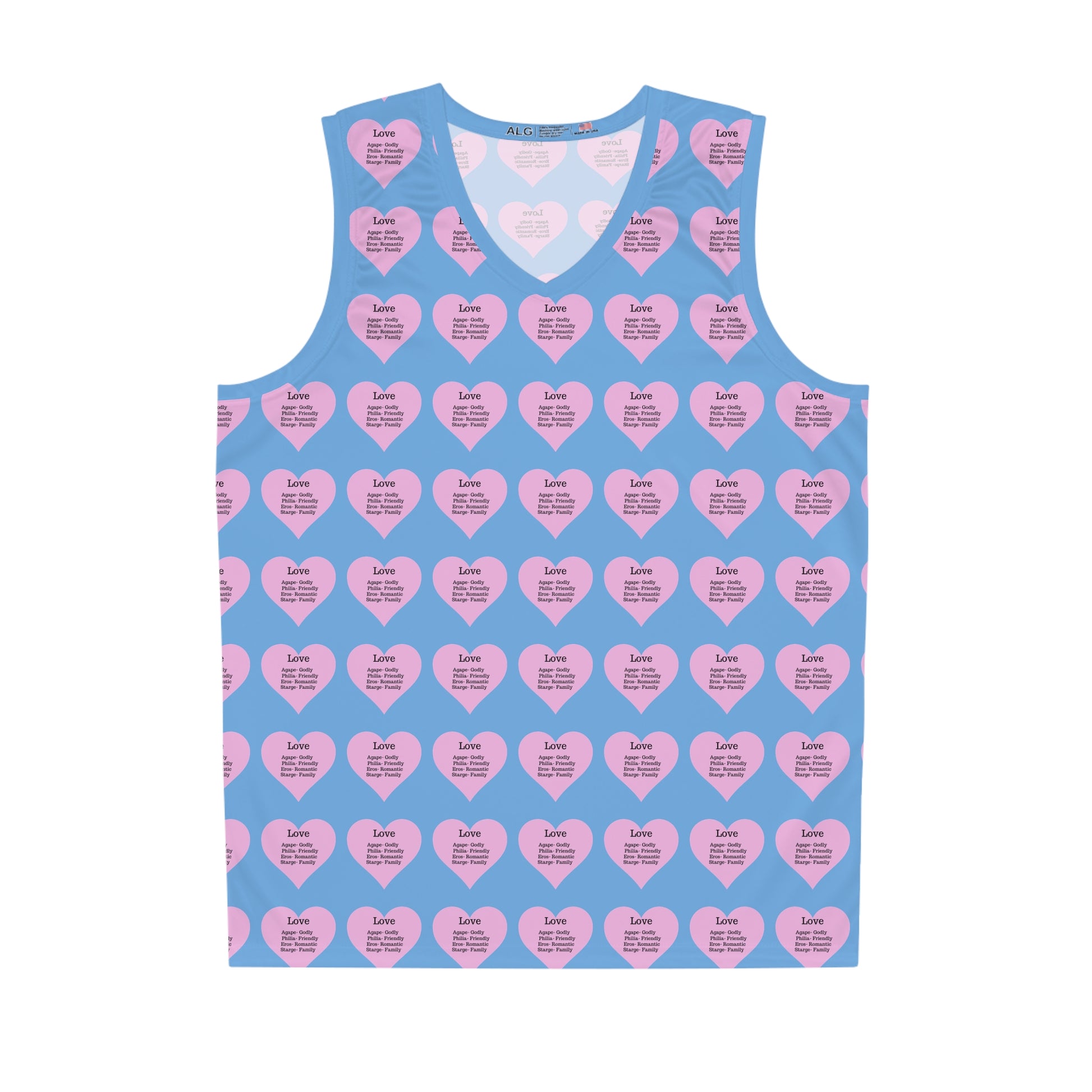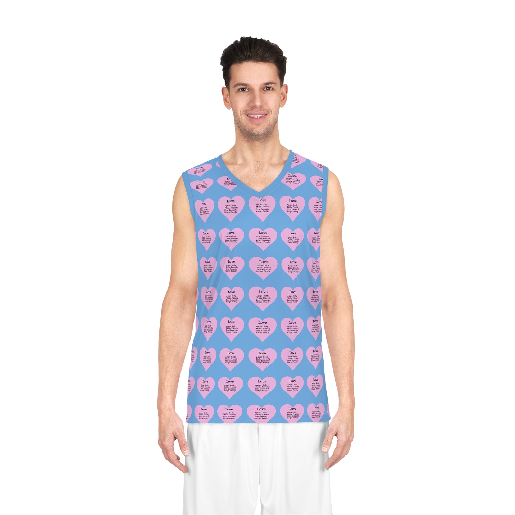 Love Heart All-Over-Print Basketball Jersey (Light Blue)