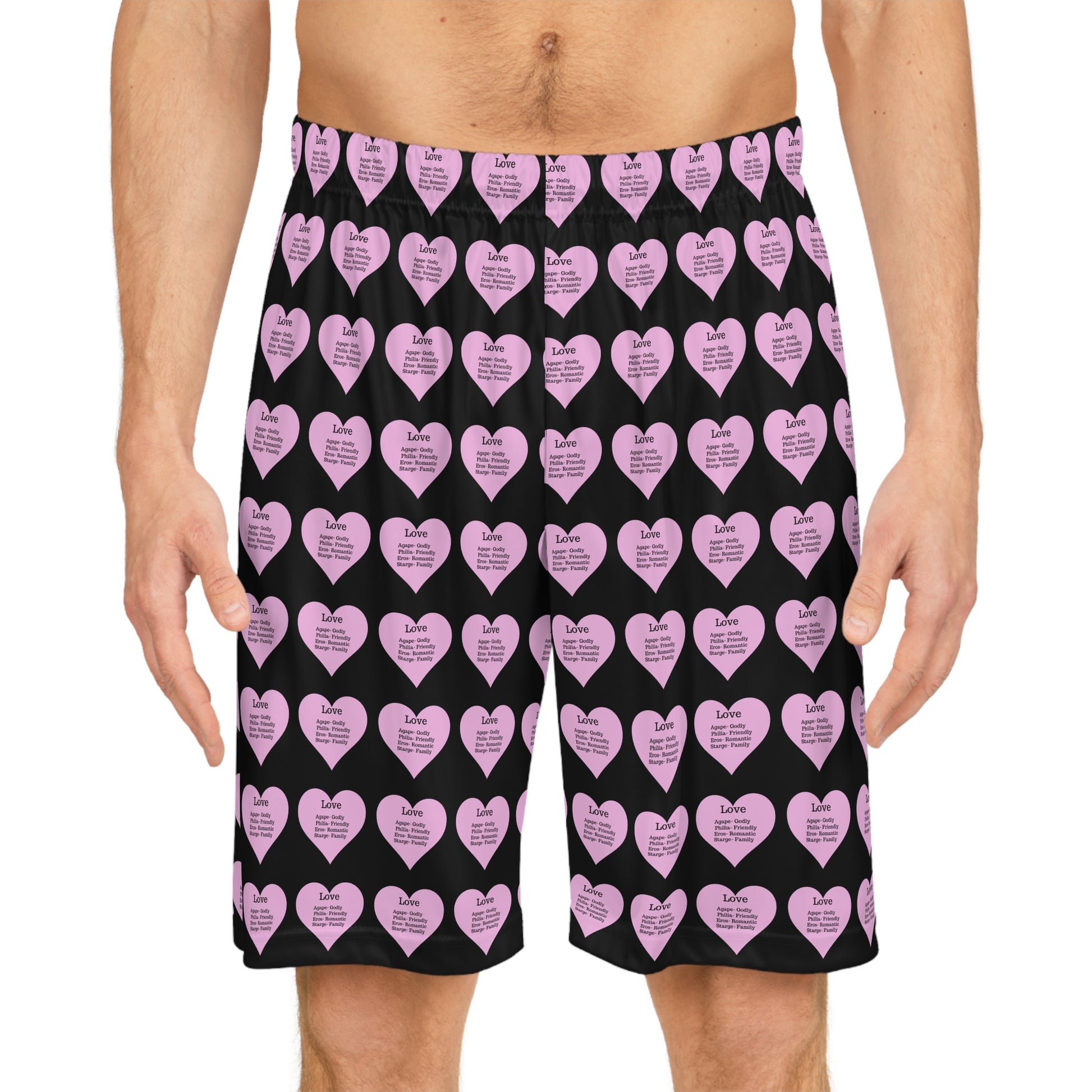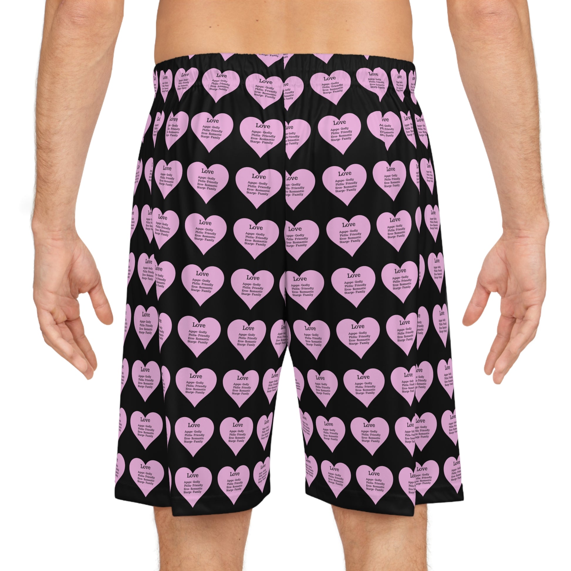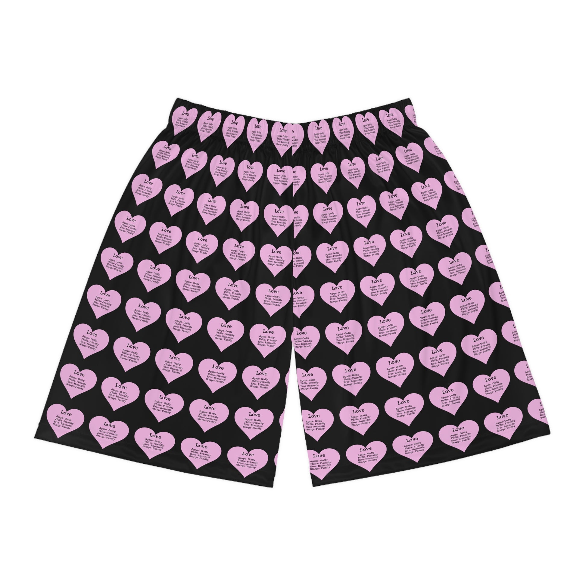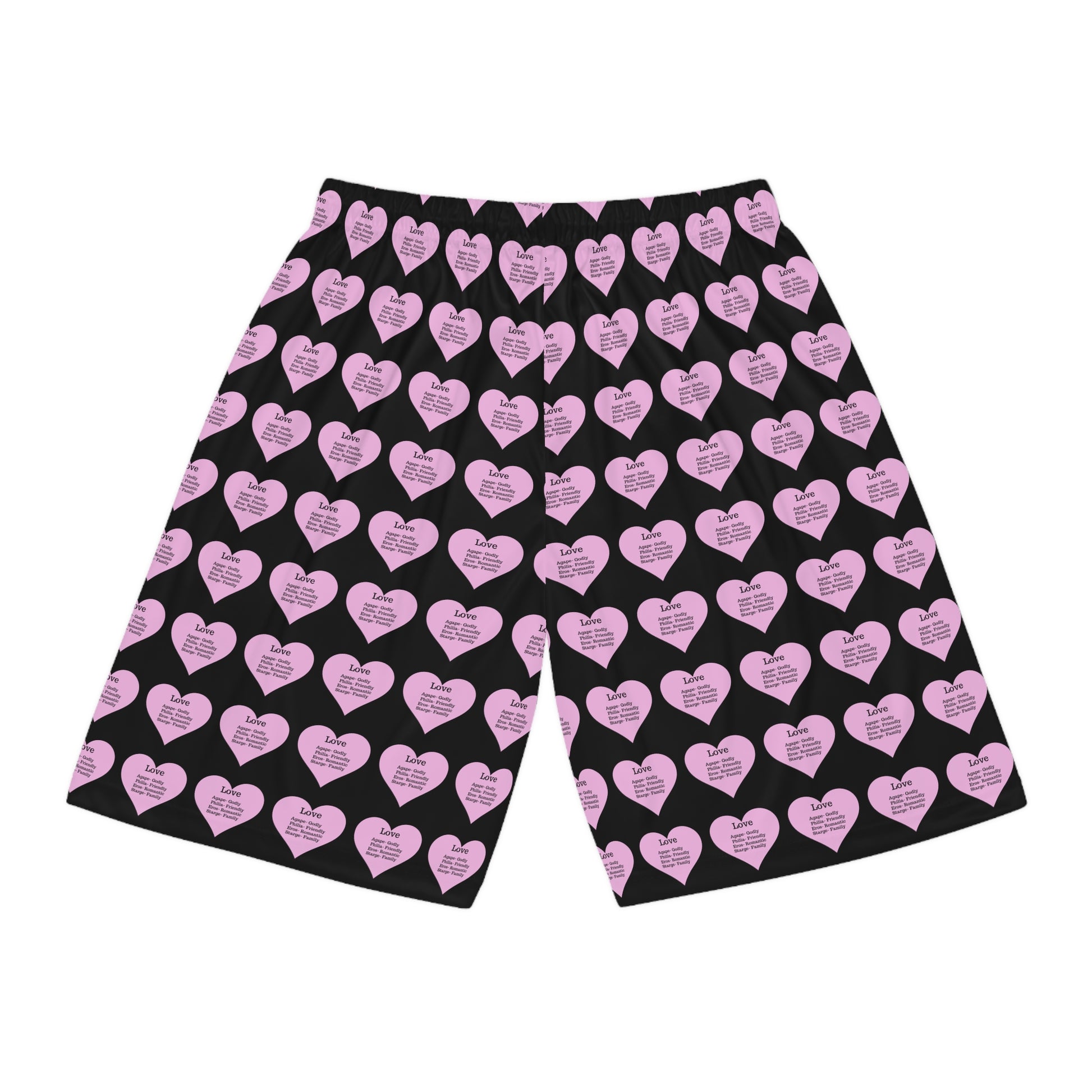 Love Heart All-Over-Print Basketball Shorts (Black)