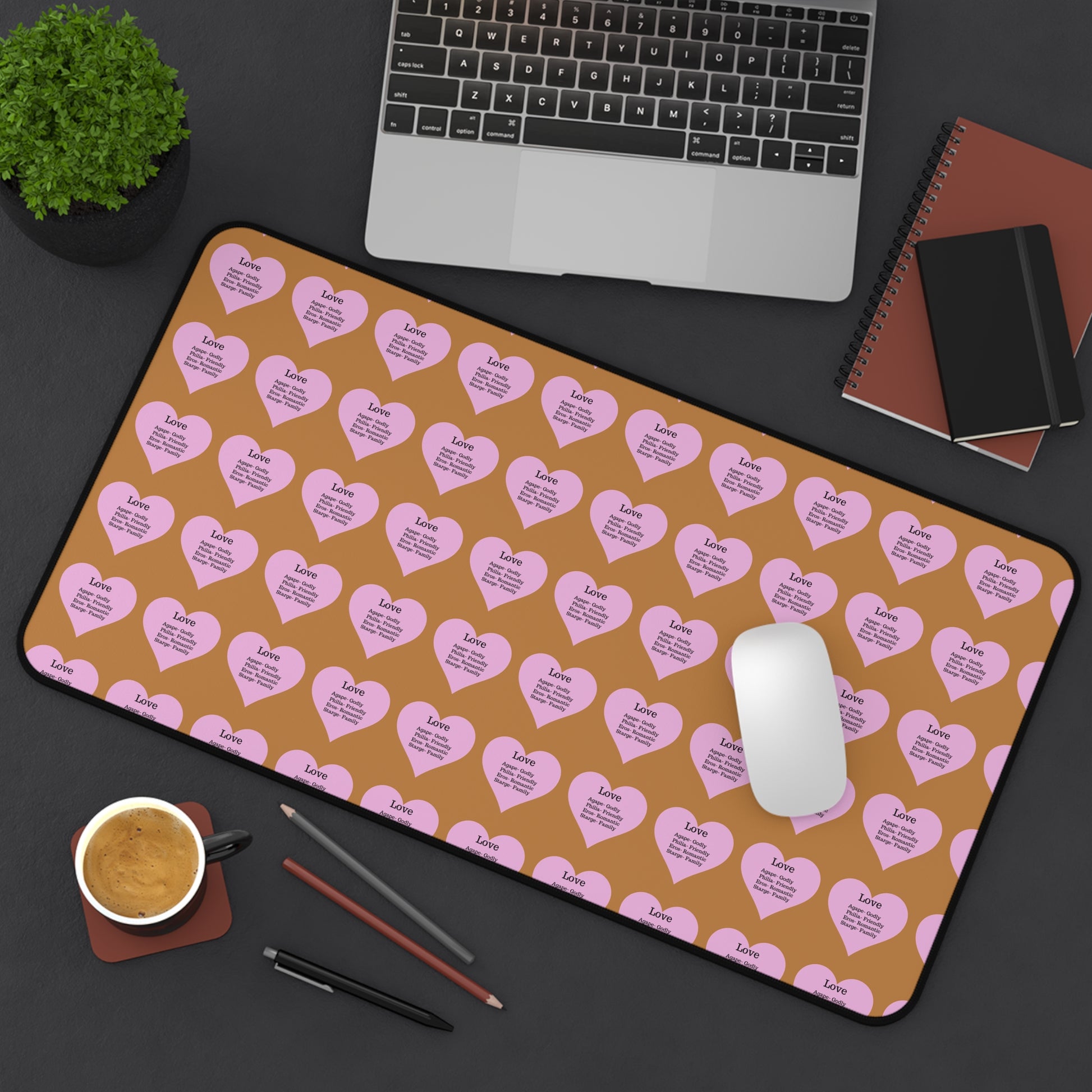 Love Hearts Desk Mat (Light brown)