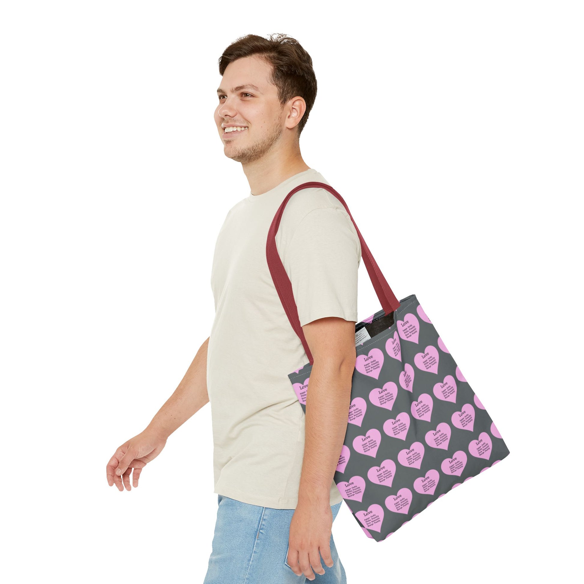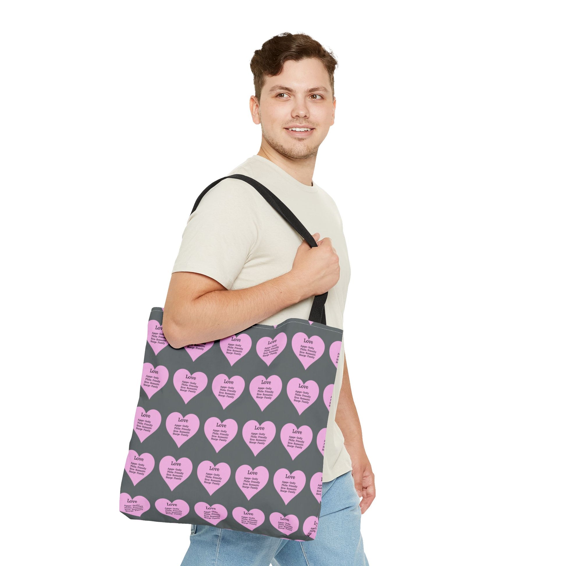 Pink Hearts Tote Bag (Dark grey)