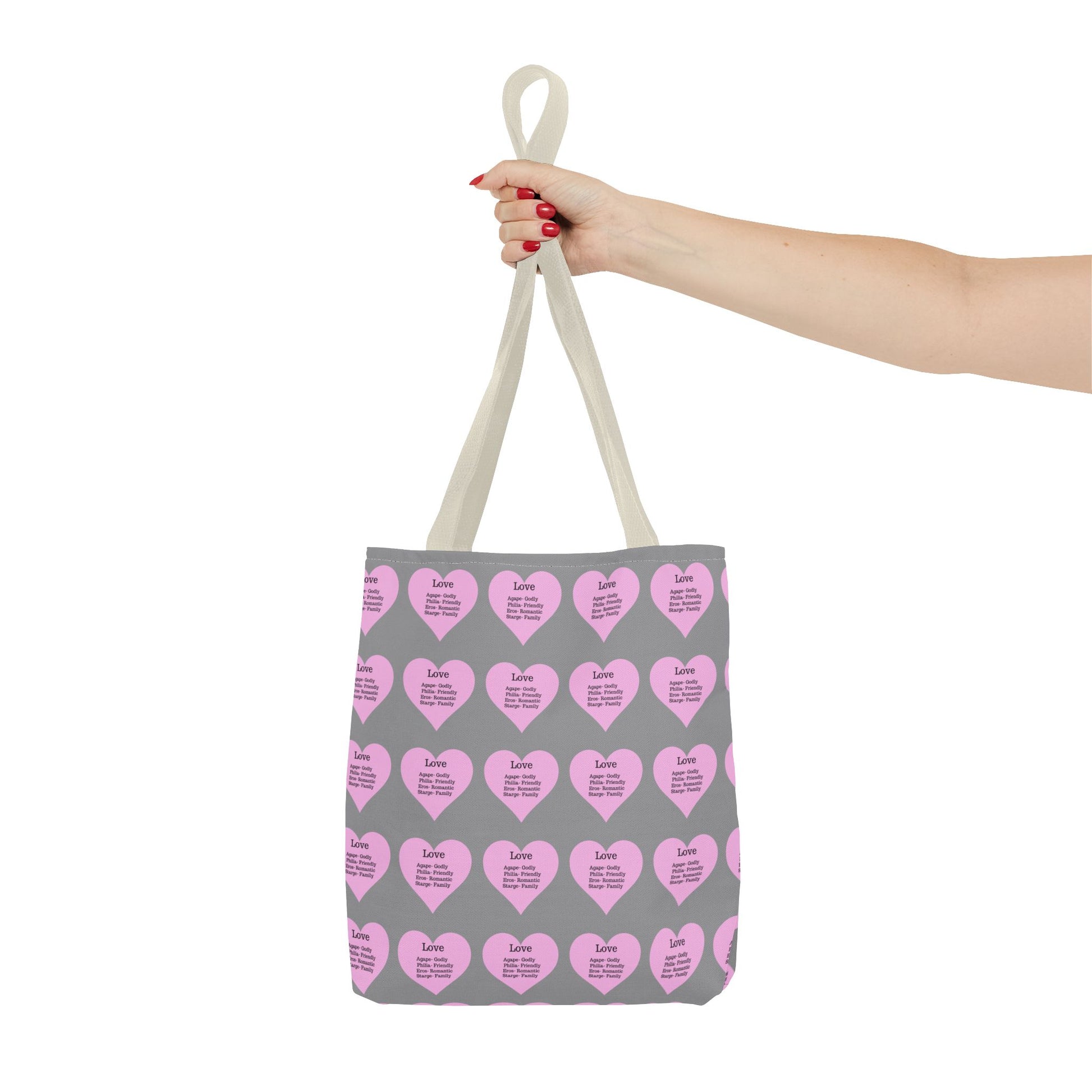 Pink Hearts Tote Bag (Grey)