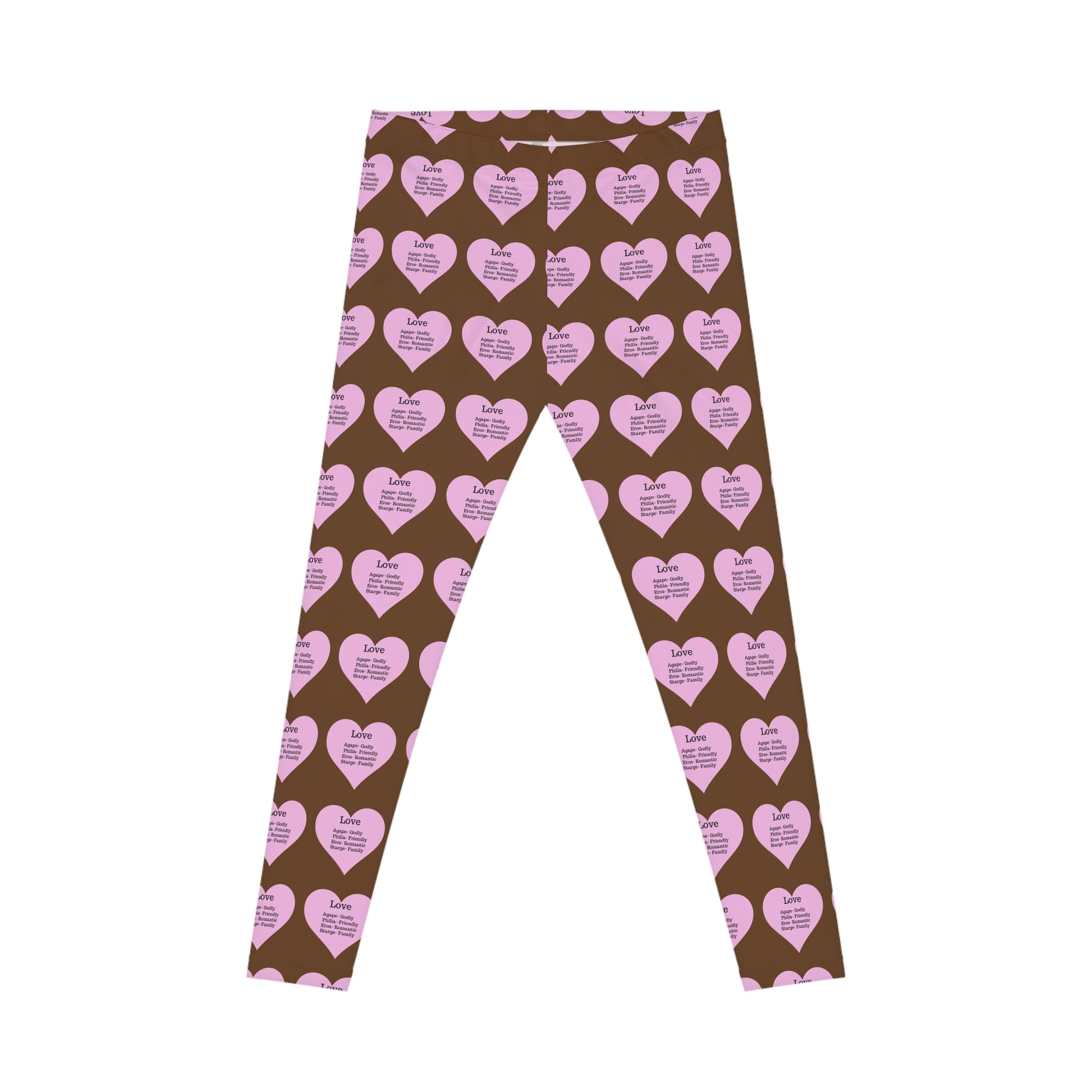 Playful Pink Heart Print Women's Casual Leggings (Brown)