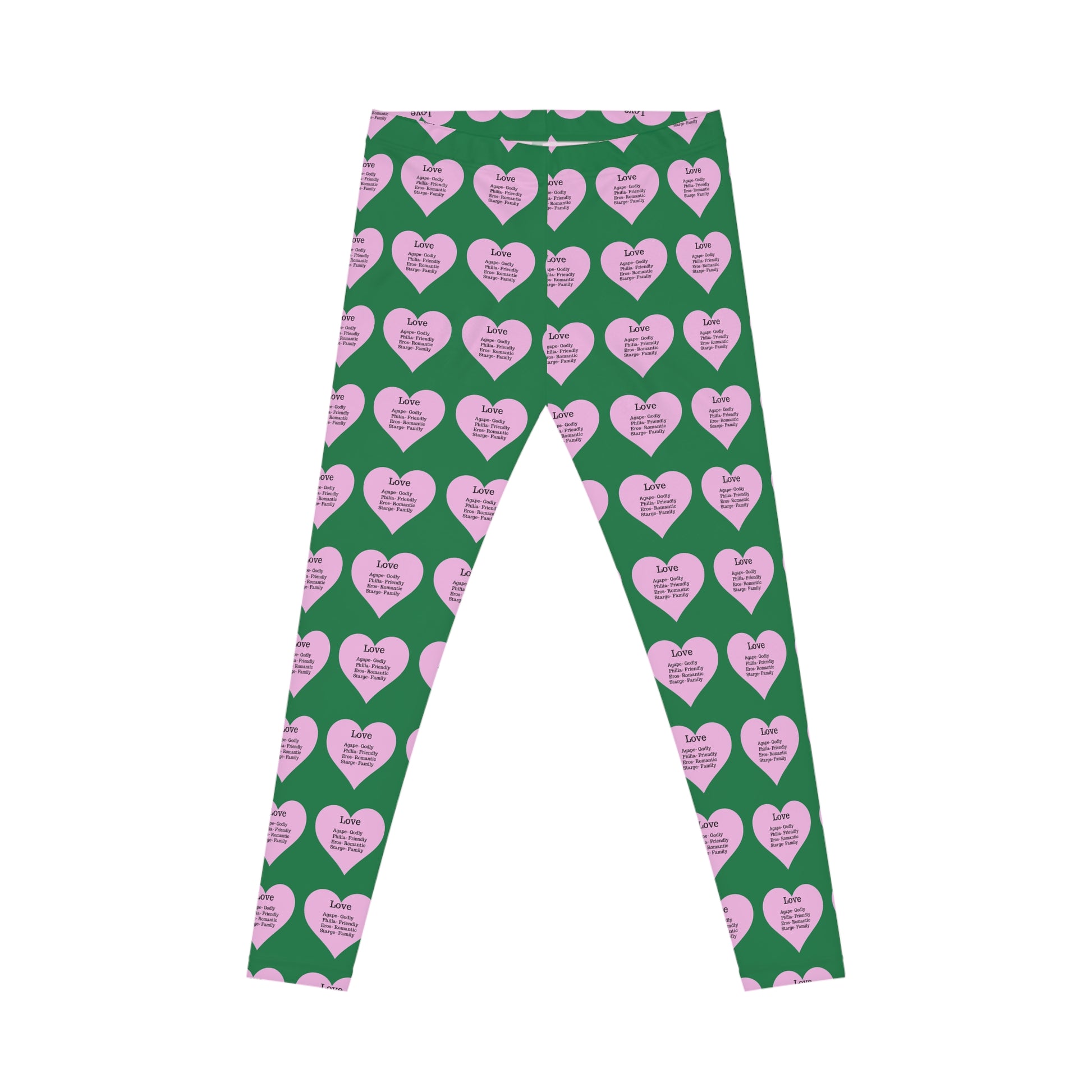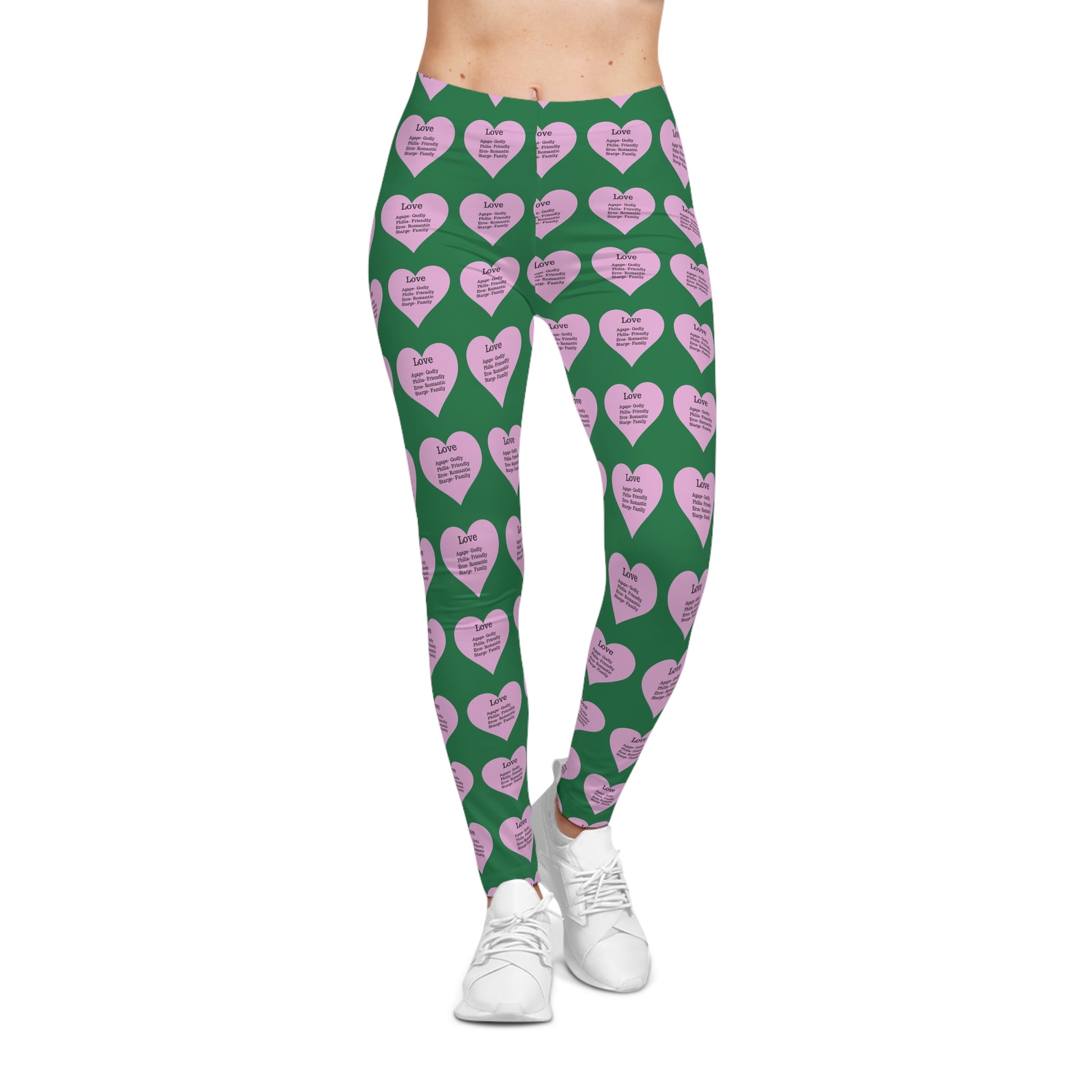 Playful Pink Heart Print Women's Casual Leggings (Dark Green)