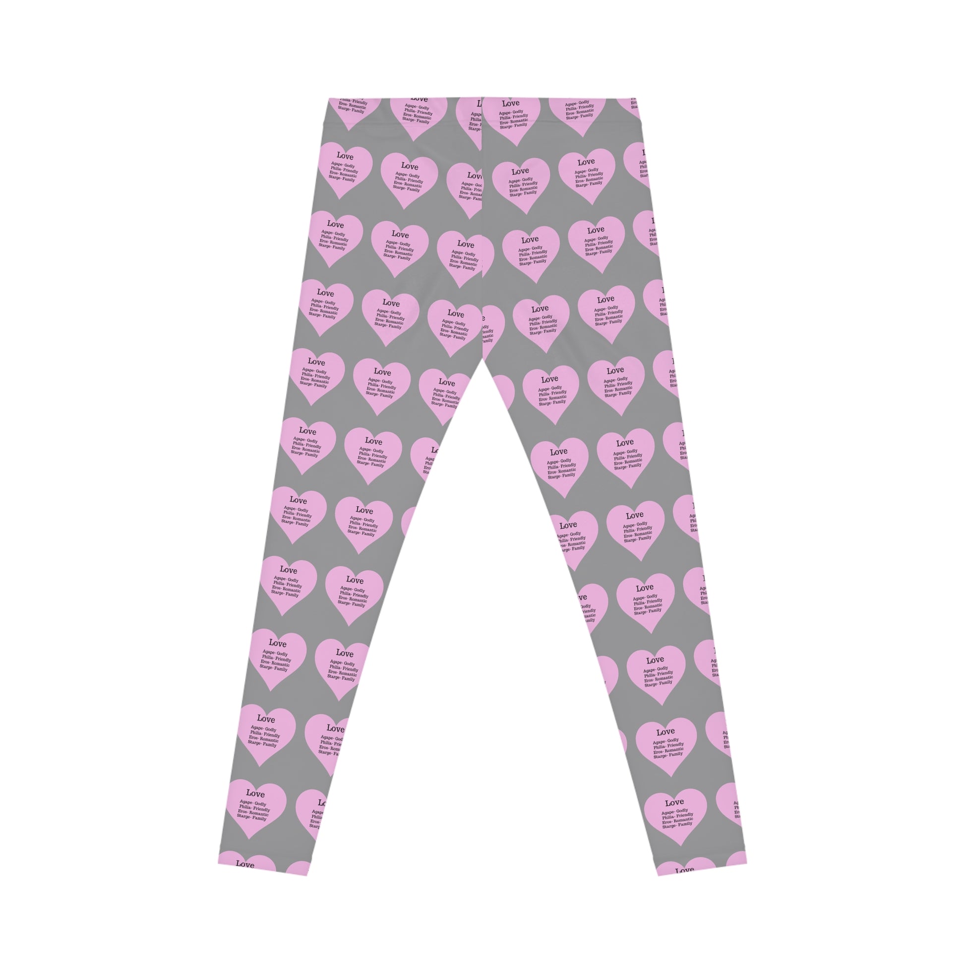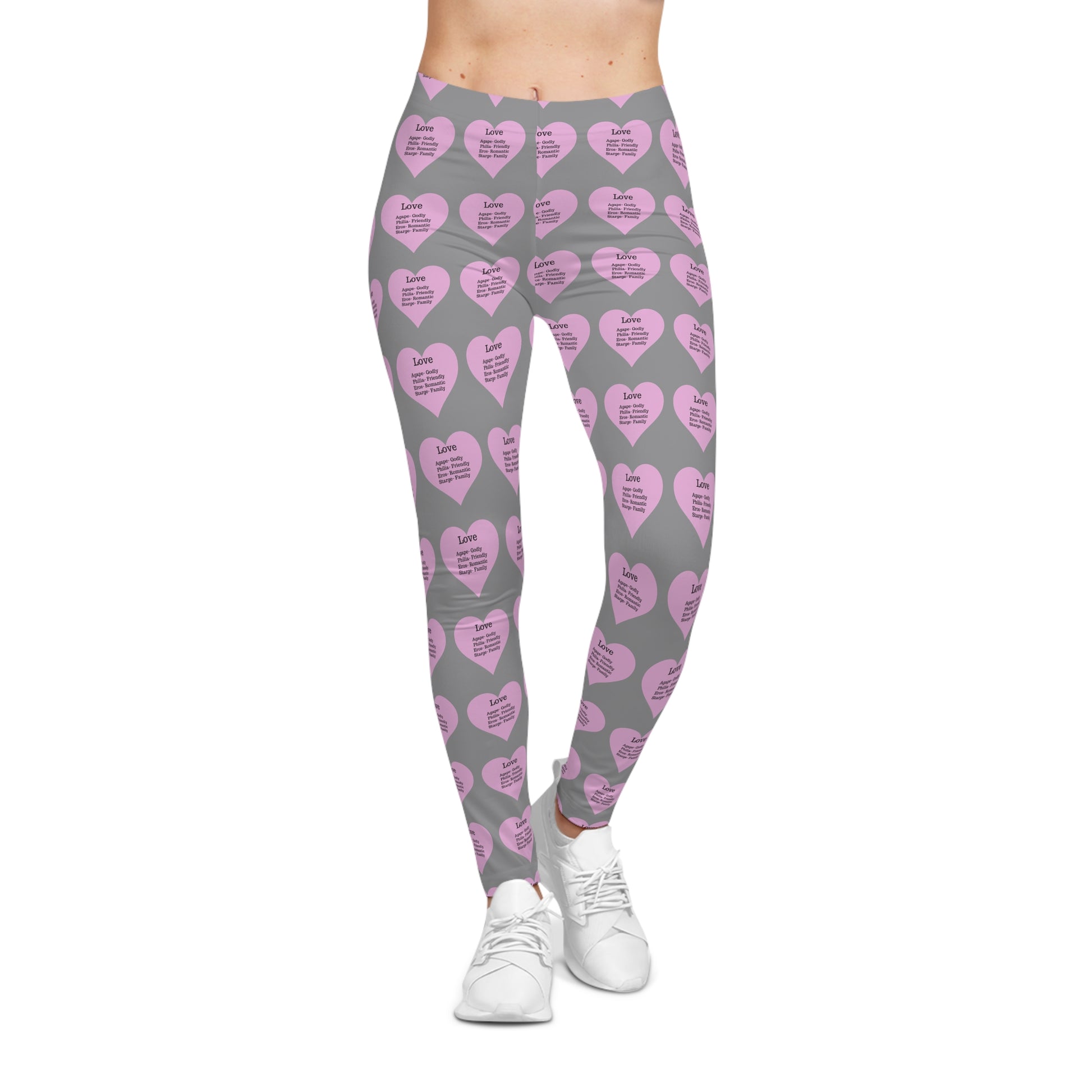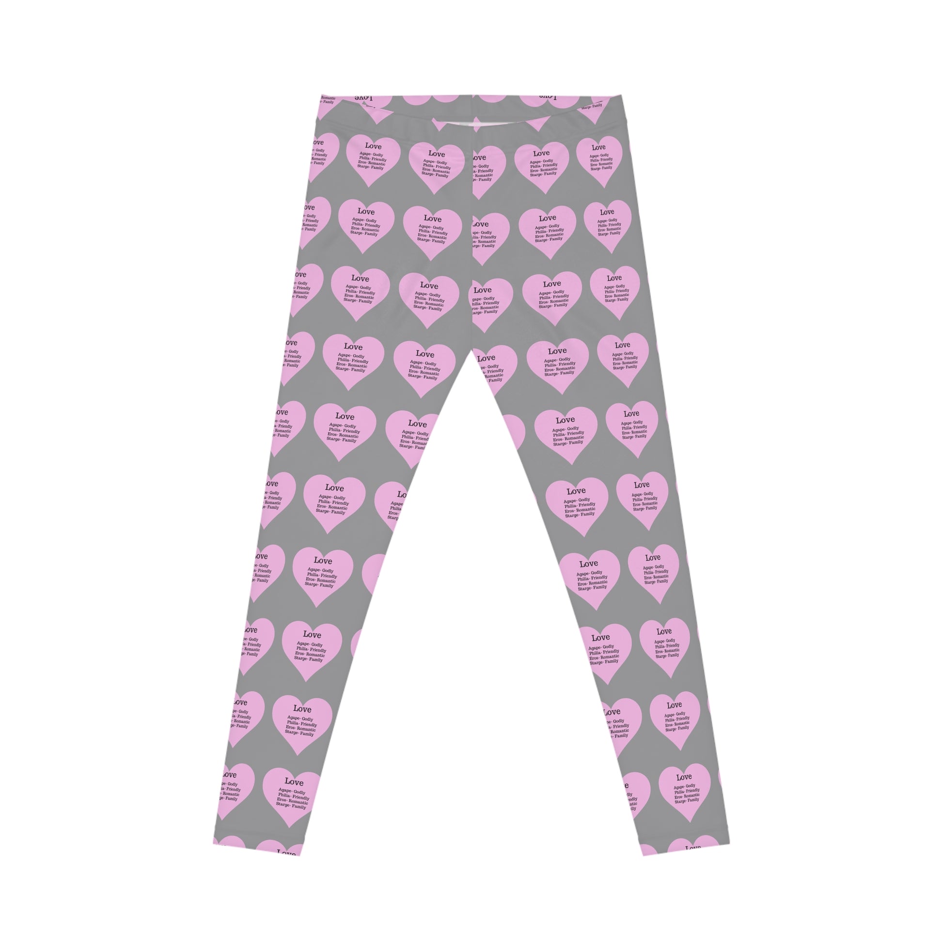 Playful Pink Heart Print Women's Casual Leggings (Grey)
