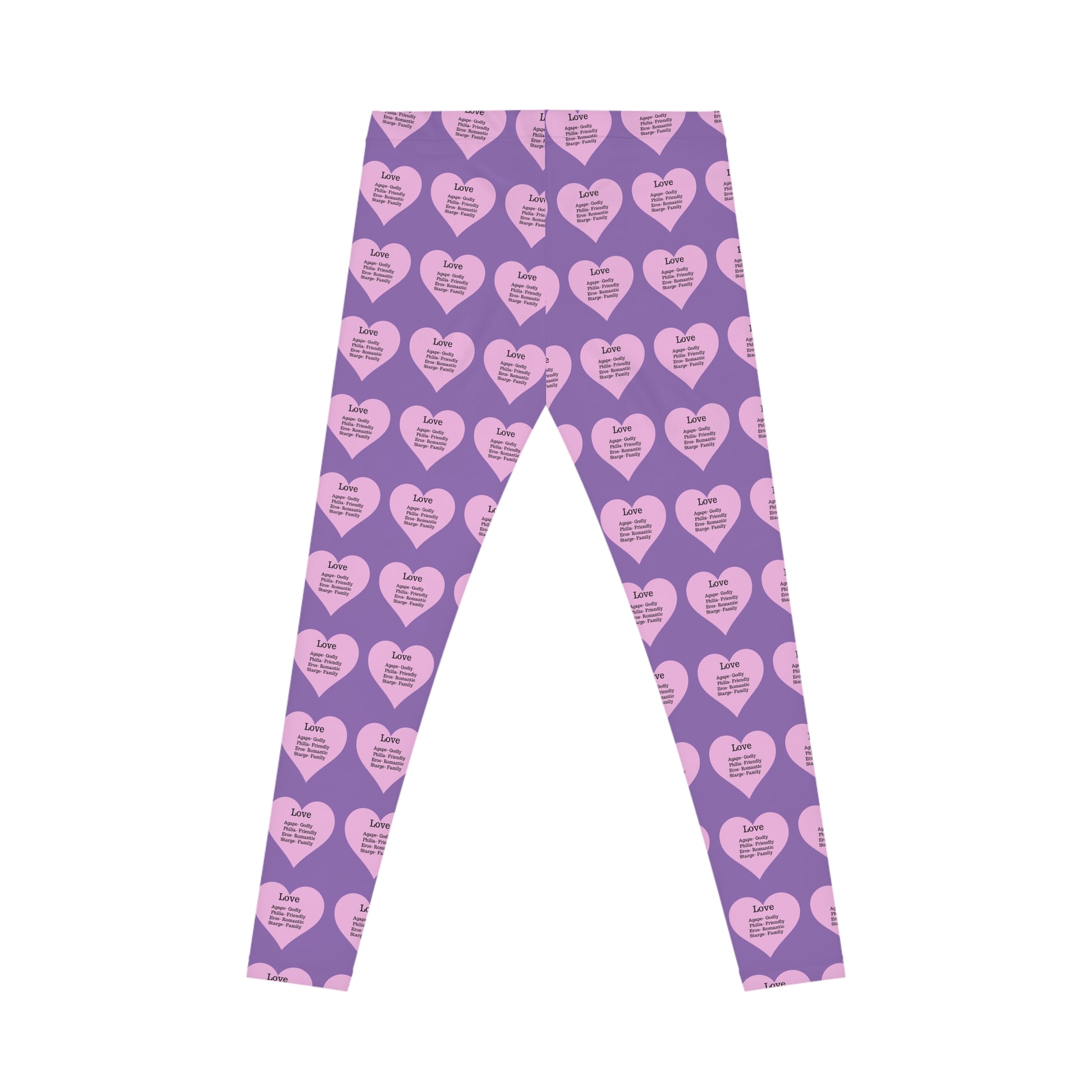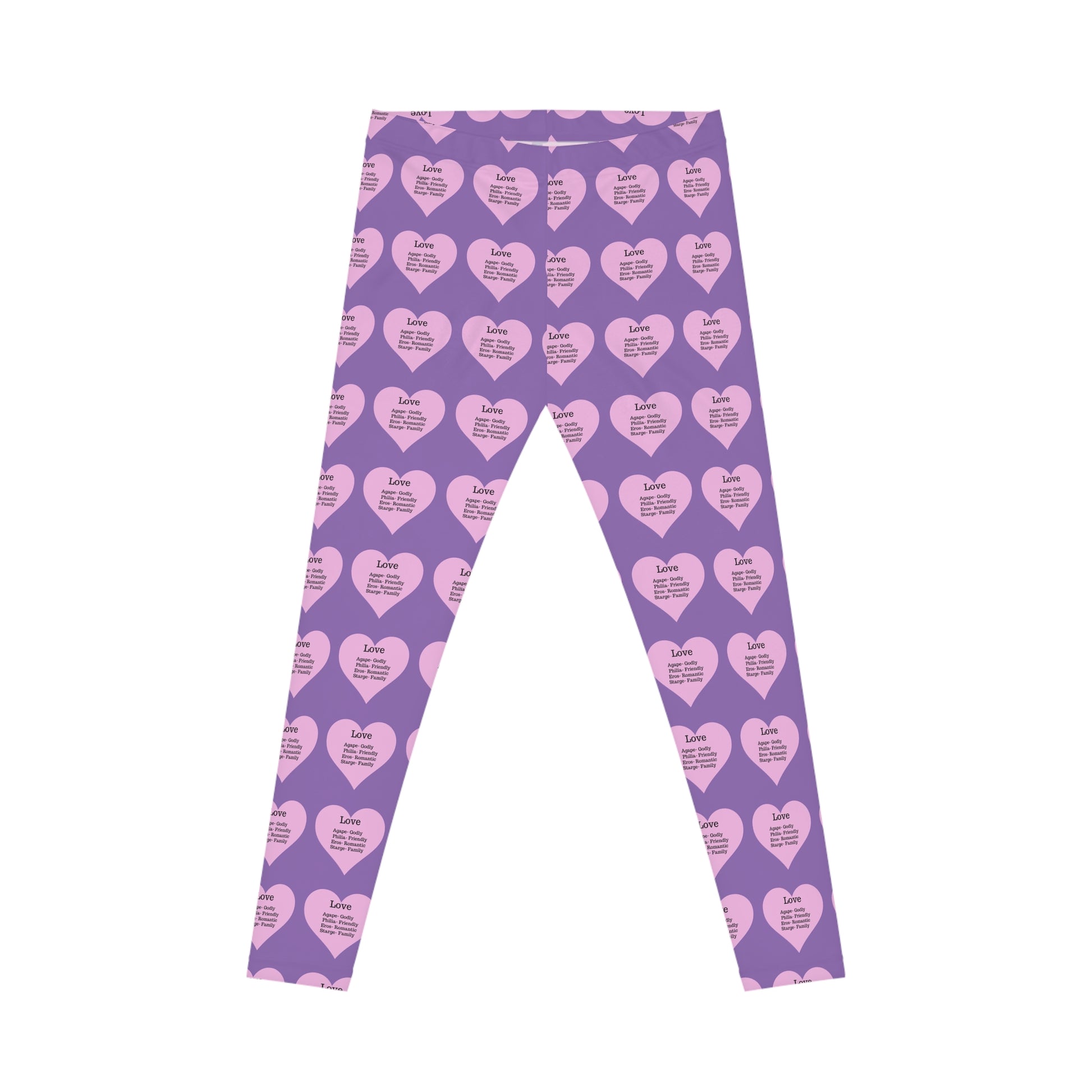 Playful Pink Heart Print Women's Casual Leggings (Light Purple)