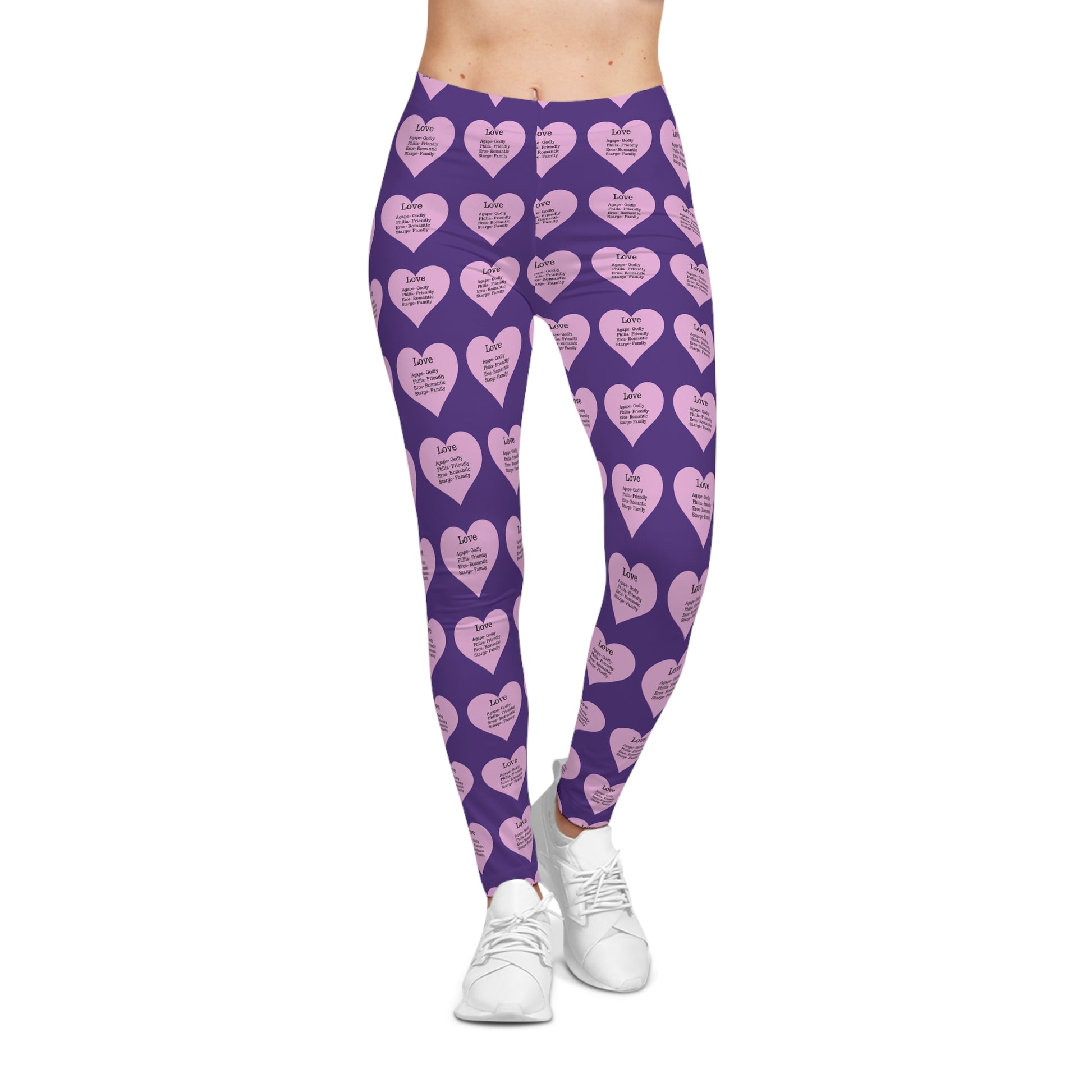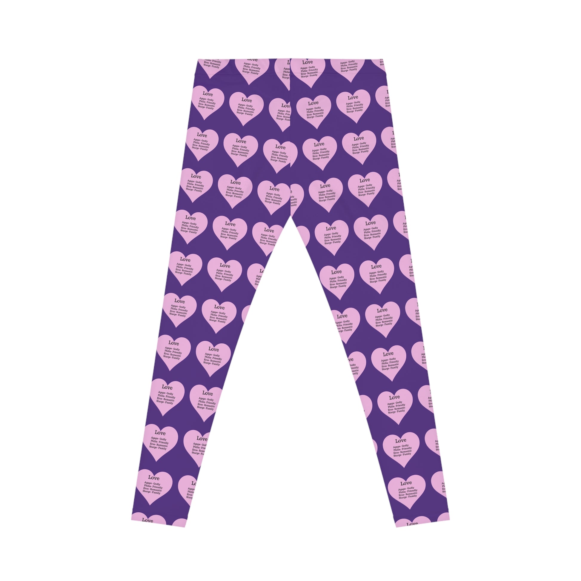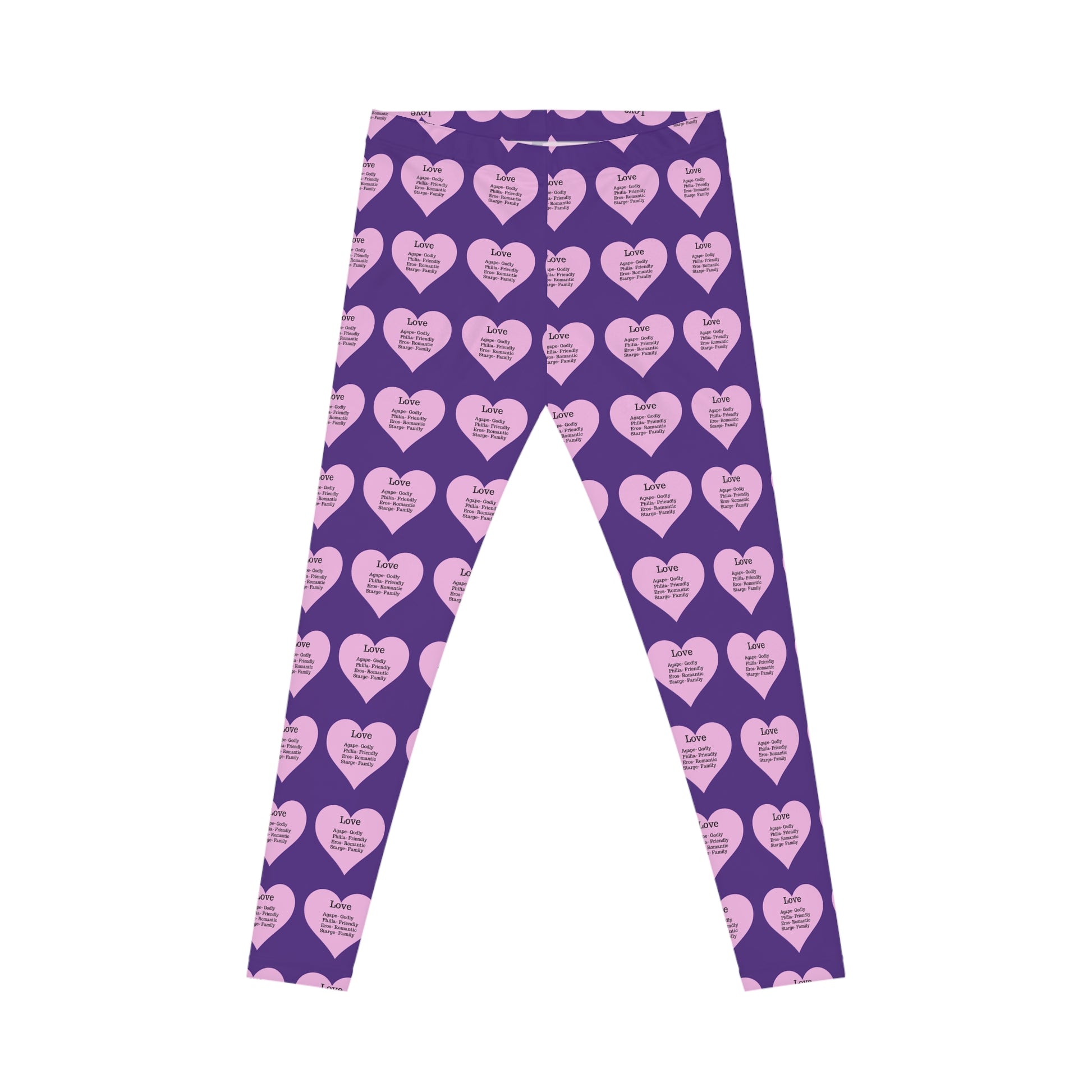 Playful Pink Heart Print Women's Casual Leggings (Purple)