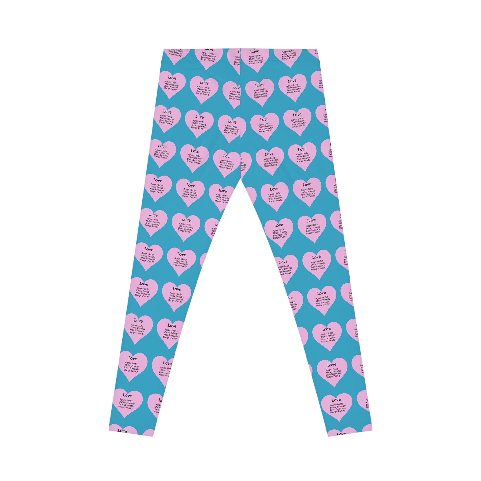 Playful Pink Heart Print Women's Casual Leggings (Turquoise)