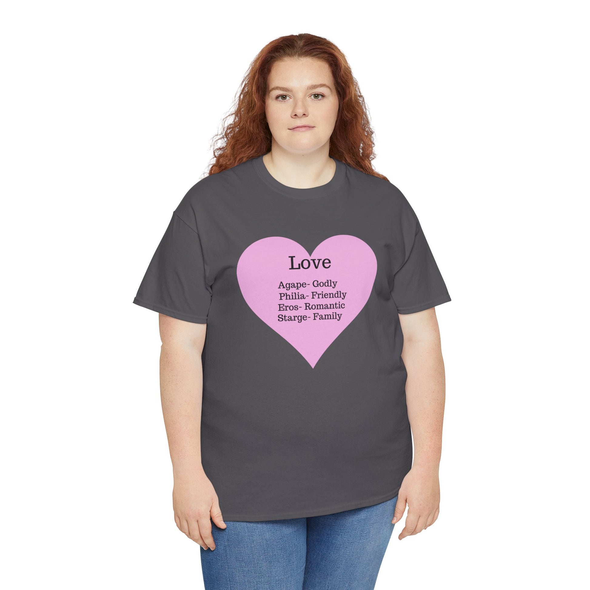 Unisex Love Heart Heavy Cotton T-Shirt - Comfortable Classic Fit Apparel